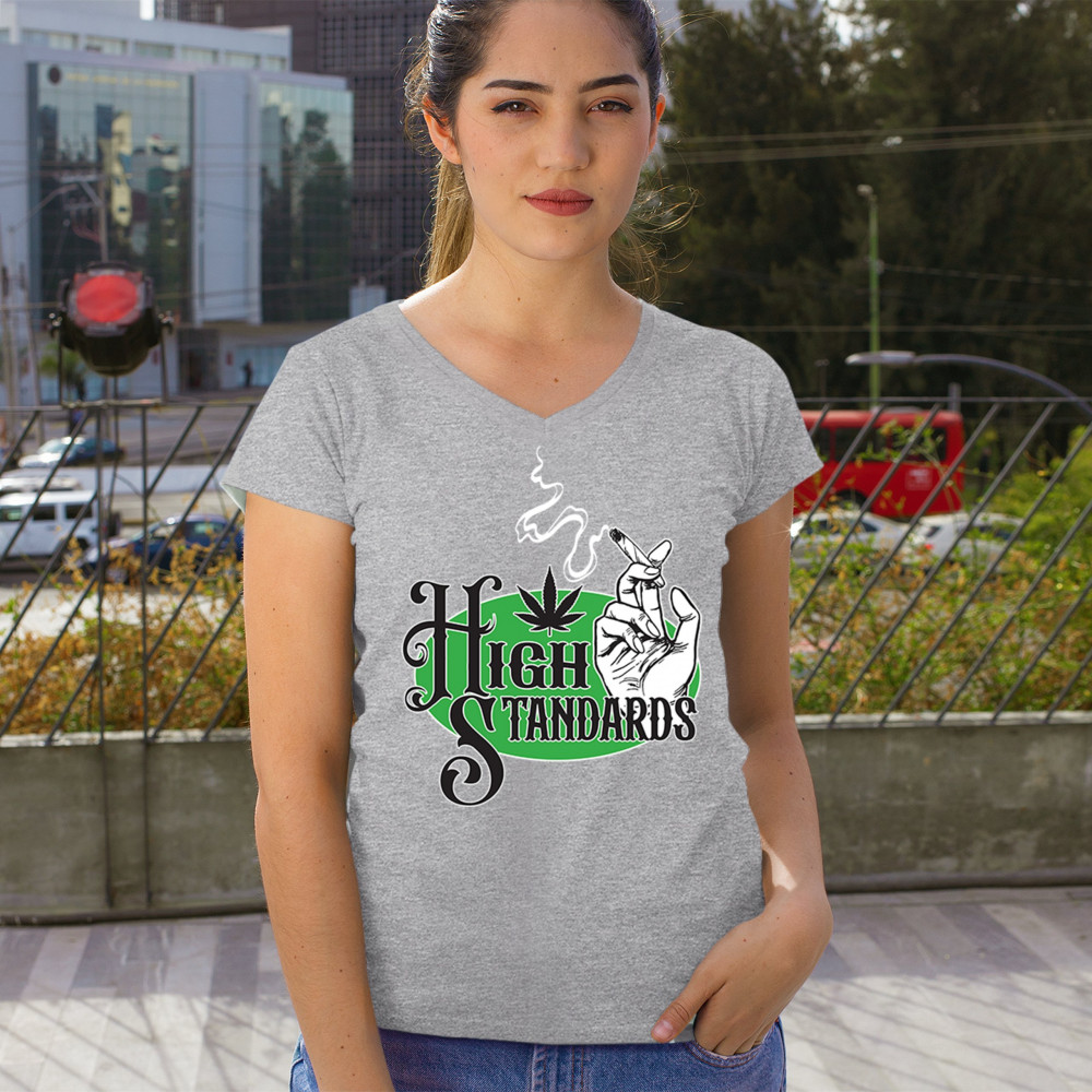 High Standards weed design with blunt humor and stoner pride. Features joint, cannabis leaf, pothead attitude, and classy chillout vibes.