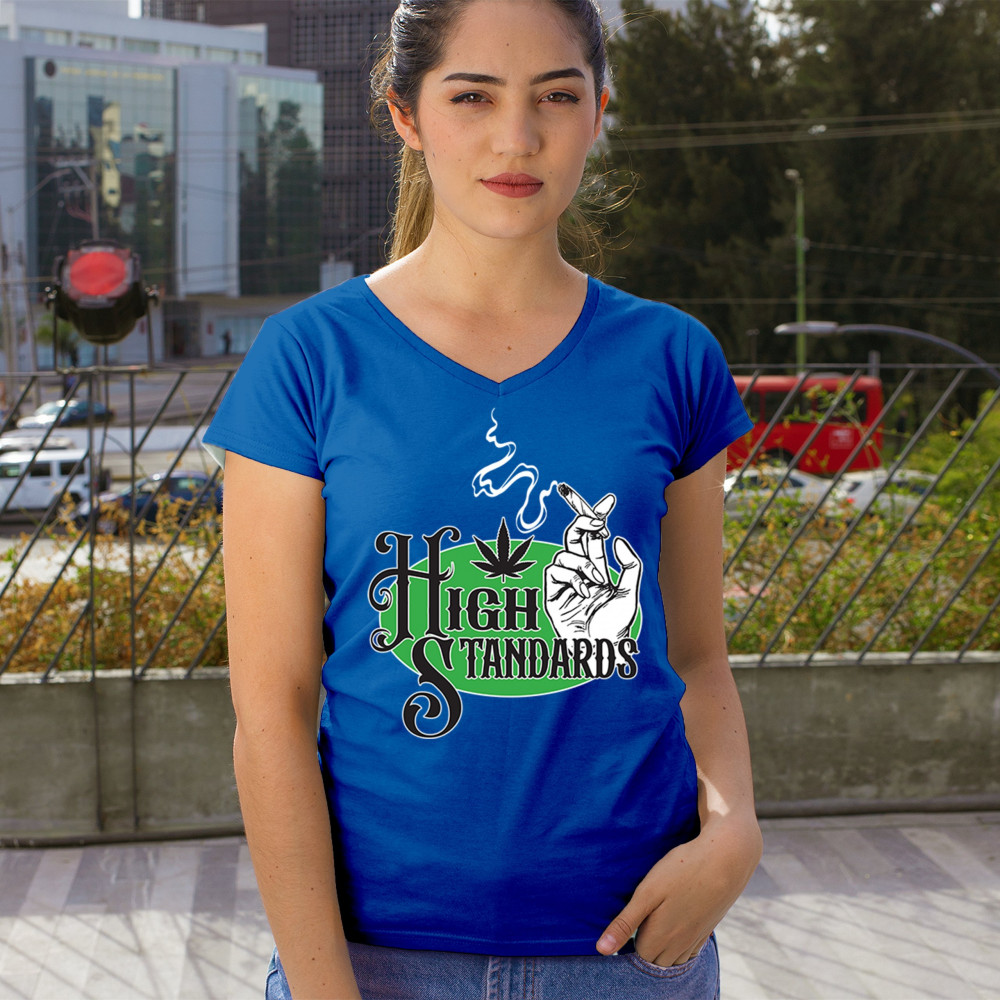 High Standards weed design with blunt humor and stoner pride. Features joint, cannabis leaf, pothead attitude, and classy chillout vibes.