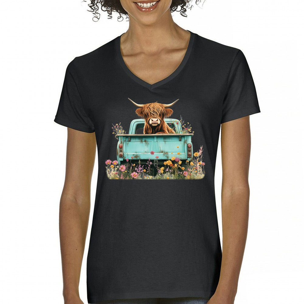 Celebrate rustic charm with this Highland Cow truck design, combining farmhouse floral truck art, boho ranch vibes, and country farmhouse shirt appeal. Perfect for cow lovers, barn style enthusiasts, and small town rural living. A vintage truck cow design that’s both cozy and stylish.