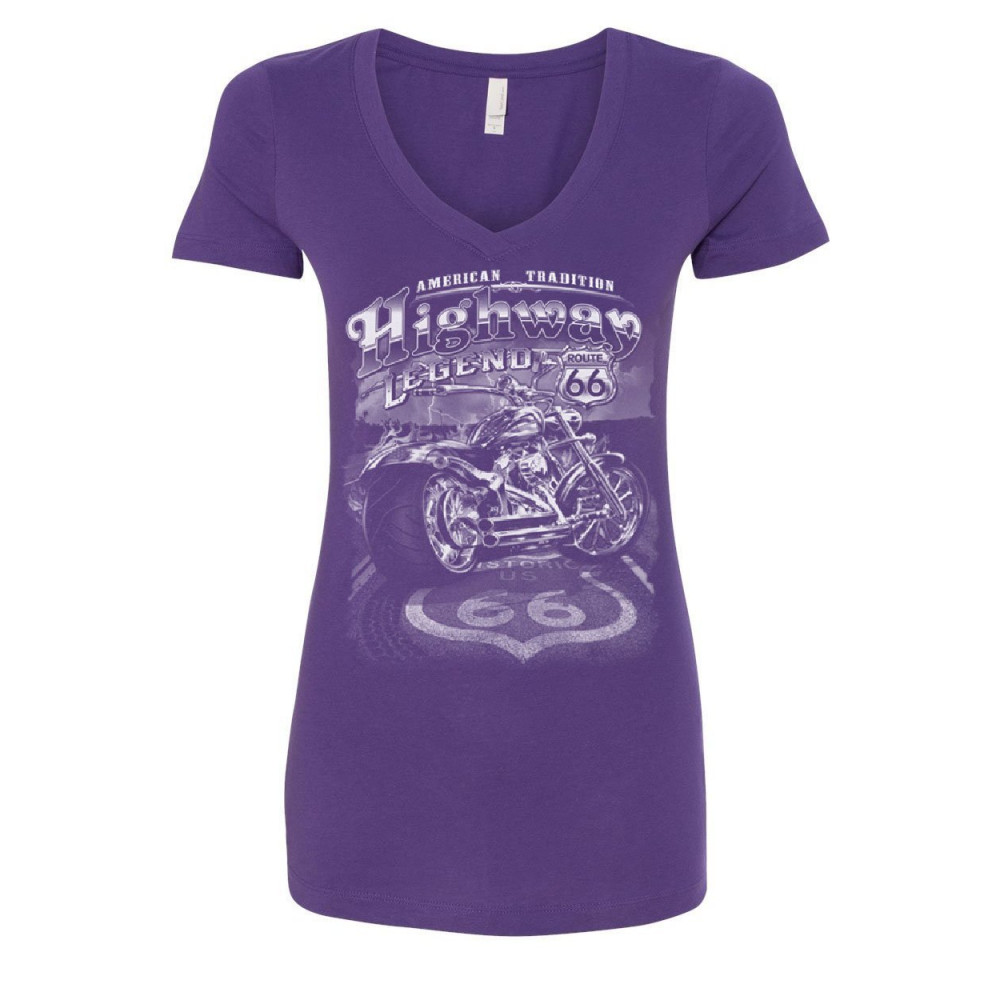 HIGHWAY LEGEND ROUTE 66 women's v-neck t-shirt biker american tradition chopper purple