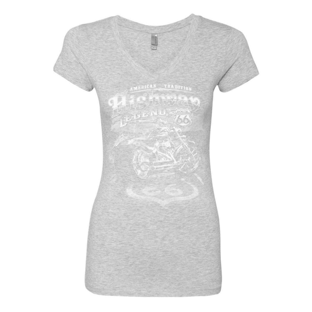 HIGHWAY LEGEND ROUTE 66 women's v-neck t-shirt biker american tradition chopper gray
