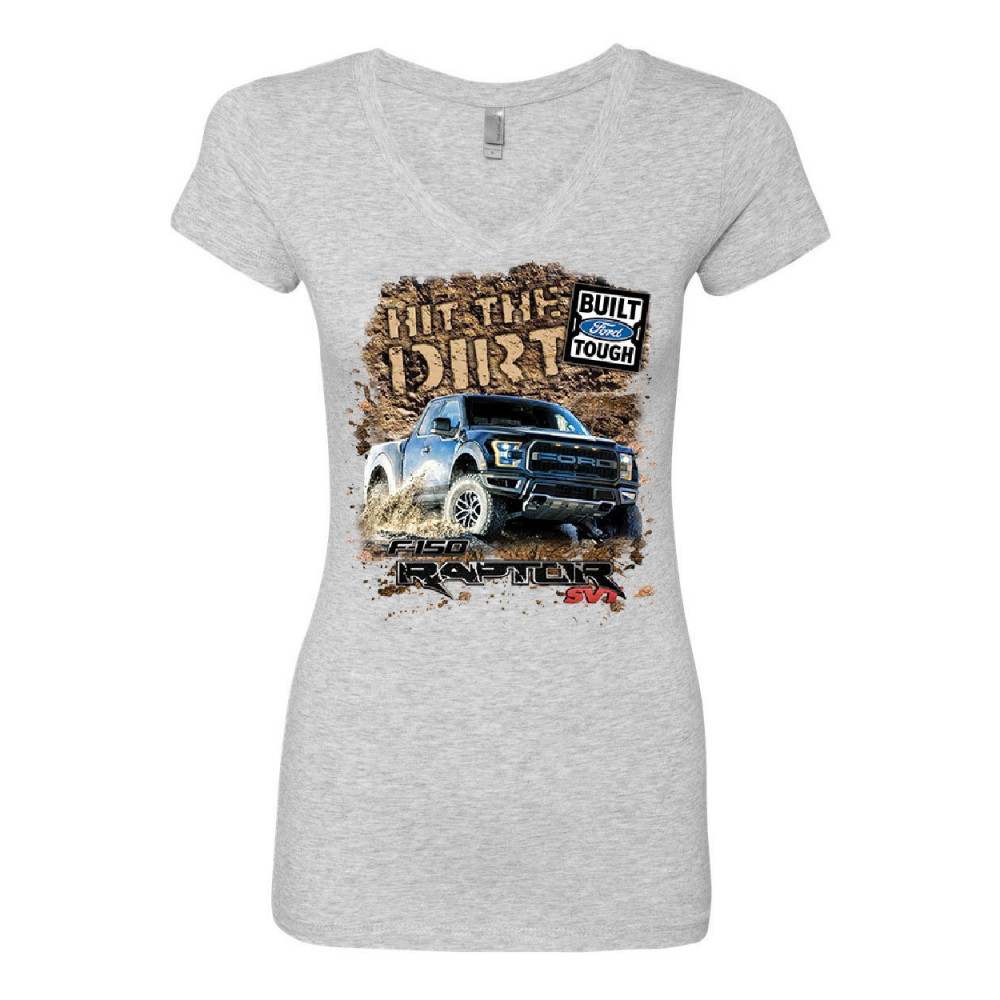 HIT THE DIRT built ford tough women's v-neck t-shirt f-150 raptor pickup truck gray