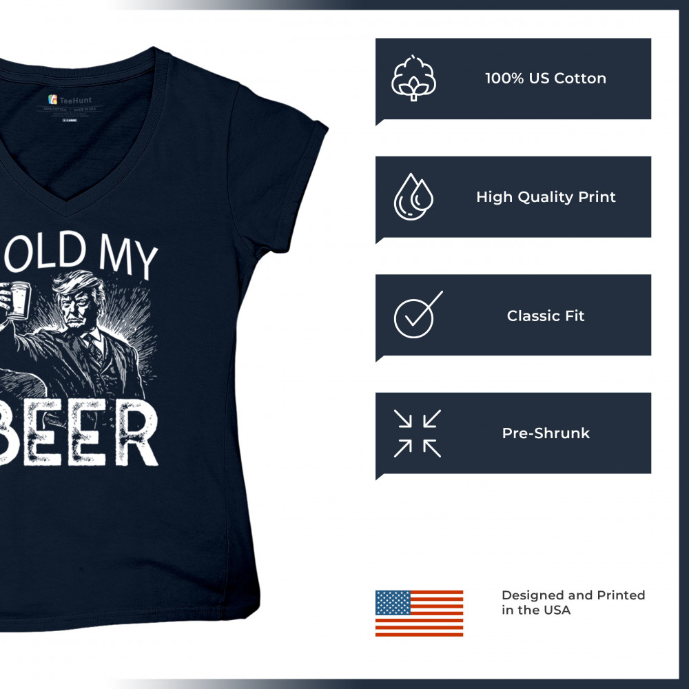 Bold and humorous "Hold My Beer" design for Trump supporters! Celebrate America First, the Red Wave, and Donald J. Trump with this patriotic graphic.