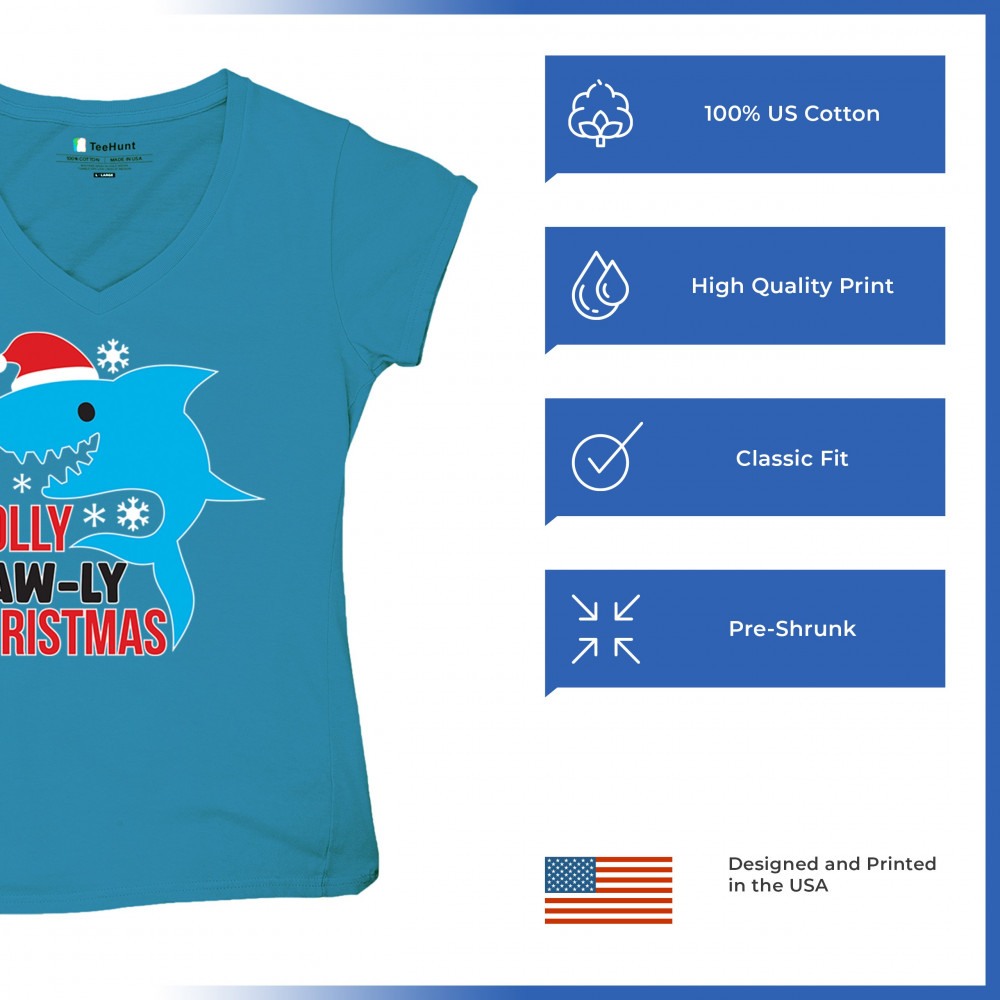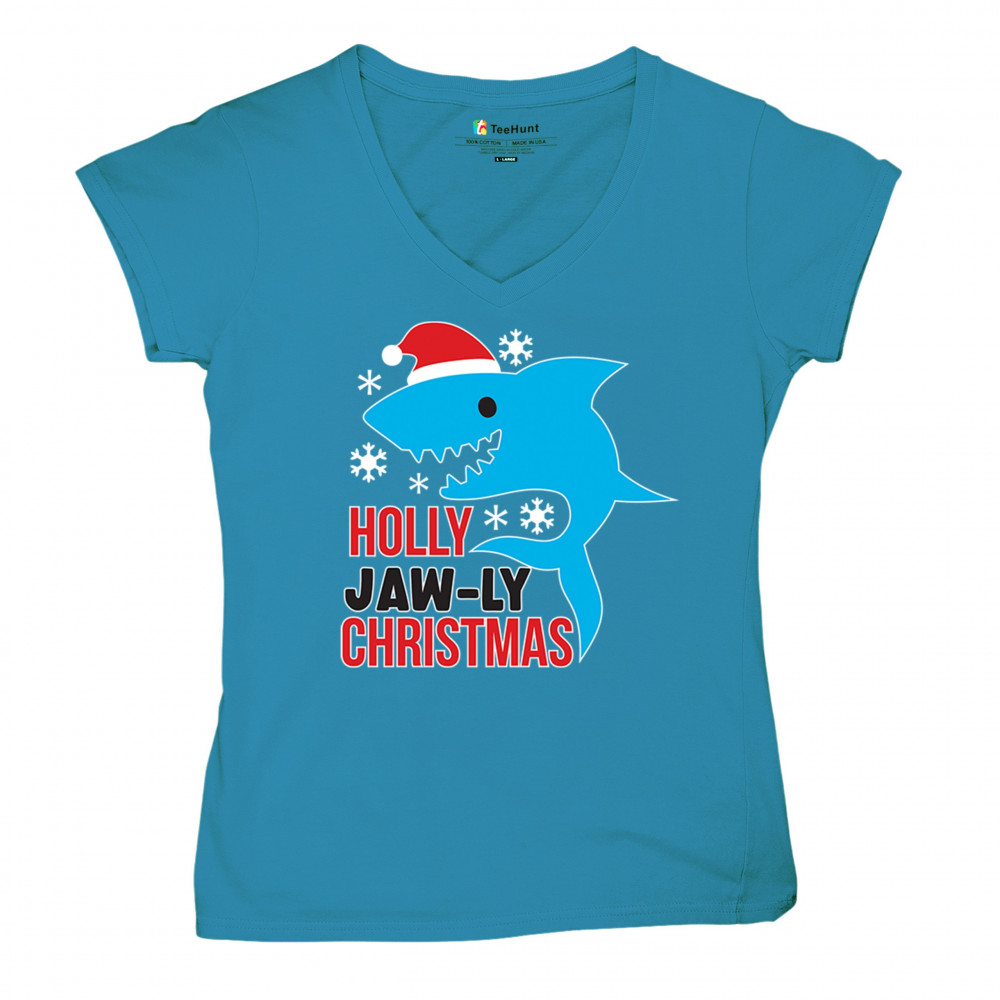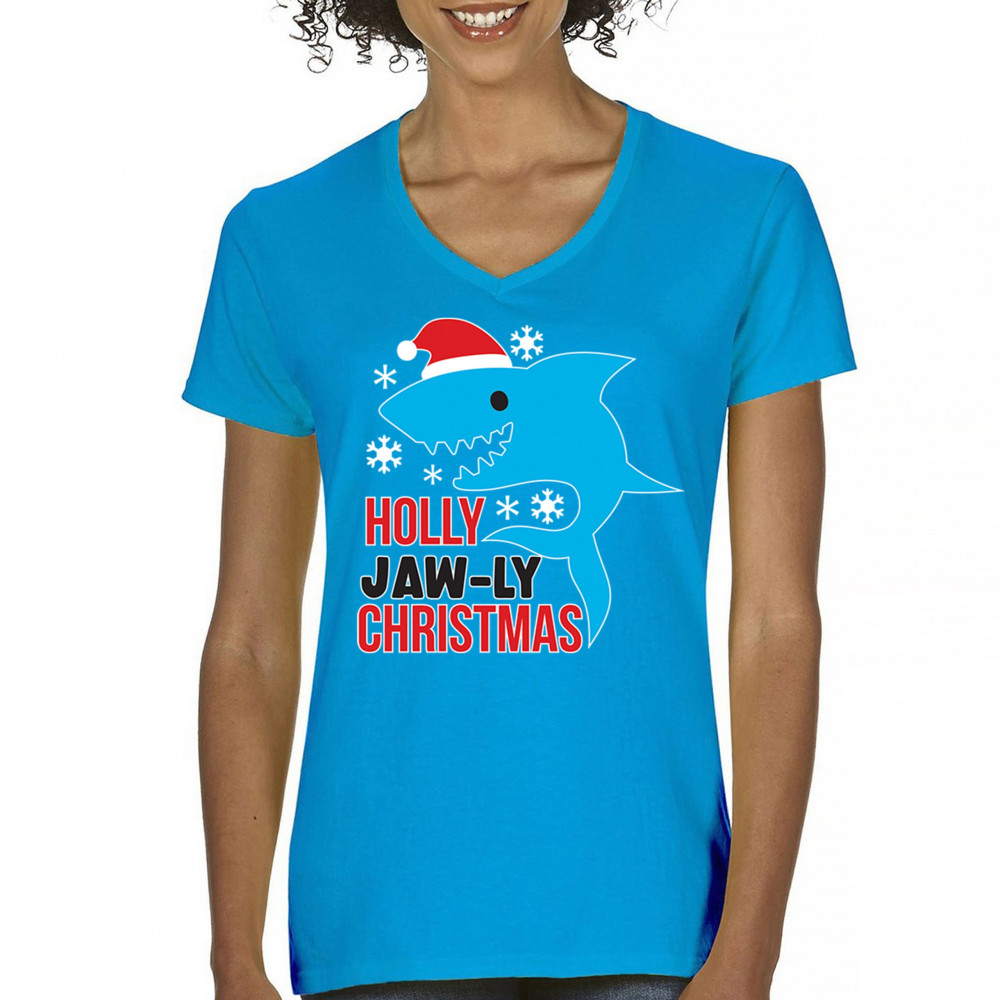A fun Holly Jaw-ly Christmas design featuring a cheerful shark in a Santa hat with bright snowflake accents. Ideal for beach lovers, ocean fans, pun humor enthusiasts, Christmas parties, festive gatherings, white elephant events, and lighthearted winter celebrations. Brings a playful coastal vibe to holiday season outfits and gifts.