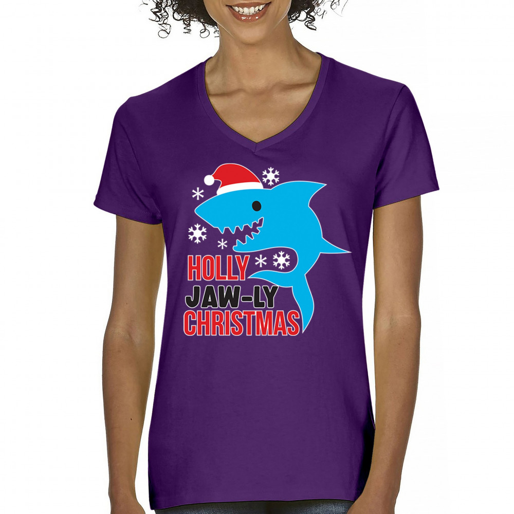 A fun Holly Jaw-ly Christmas design featuring a cheerful shark in a Santa hat with bright snowflake accents. Ideal for beach lovers, ocean fans, pun humor enthusiasts, Christmas parties, festive gatherings, white elephant events, and lighthearted winter celebrations. Brings a playful coastal vibe to holiday season outfits and gifts.