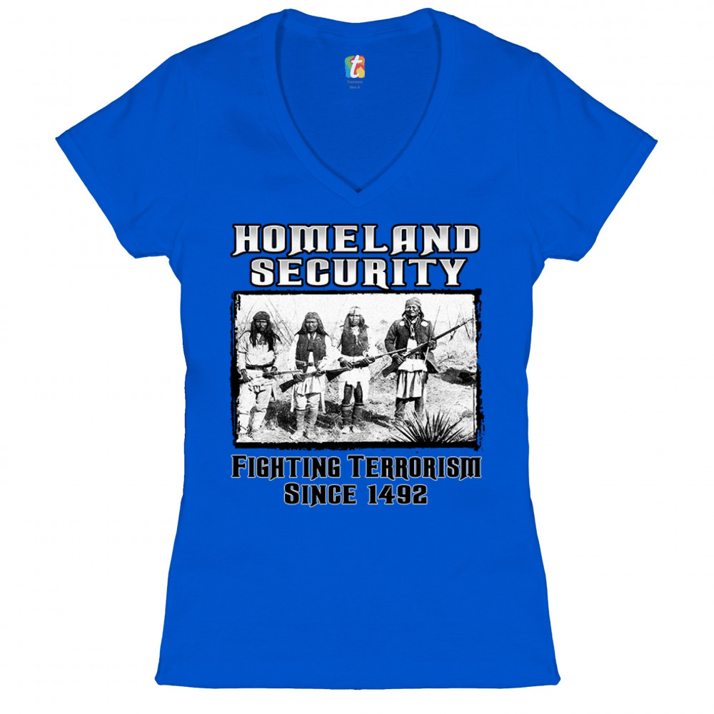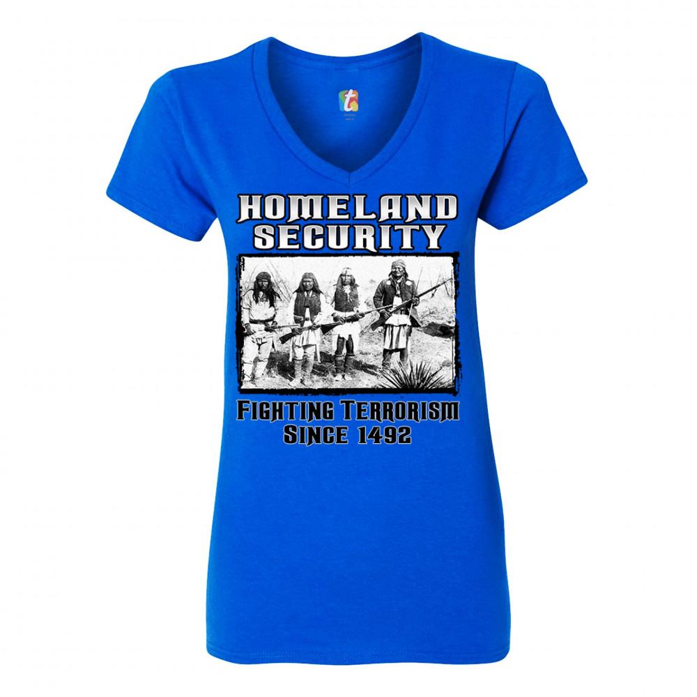 HOMELAND SECURITY women's v-neck t-shirt native american indigenous tribal tee royal blue