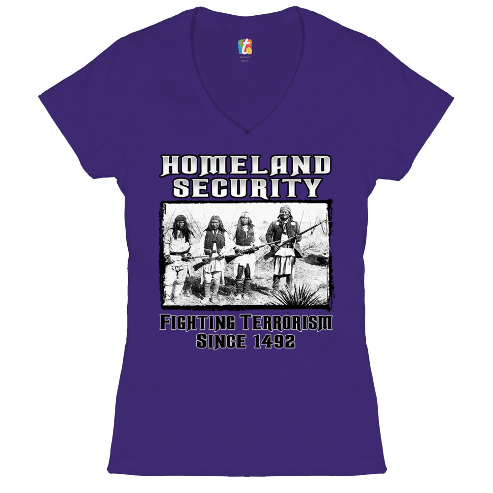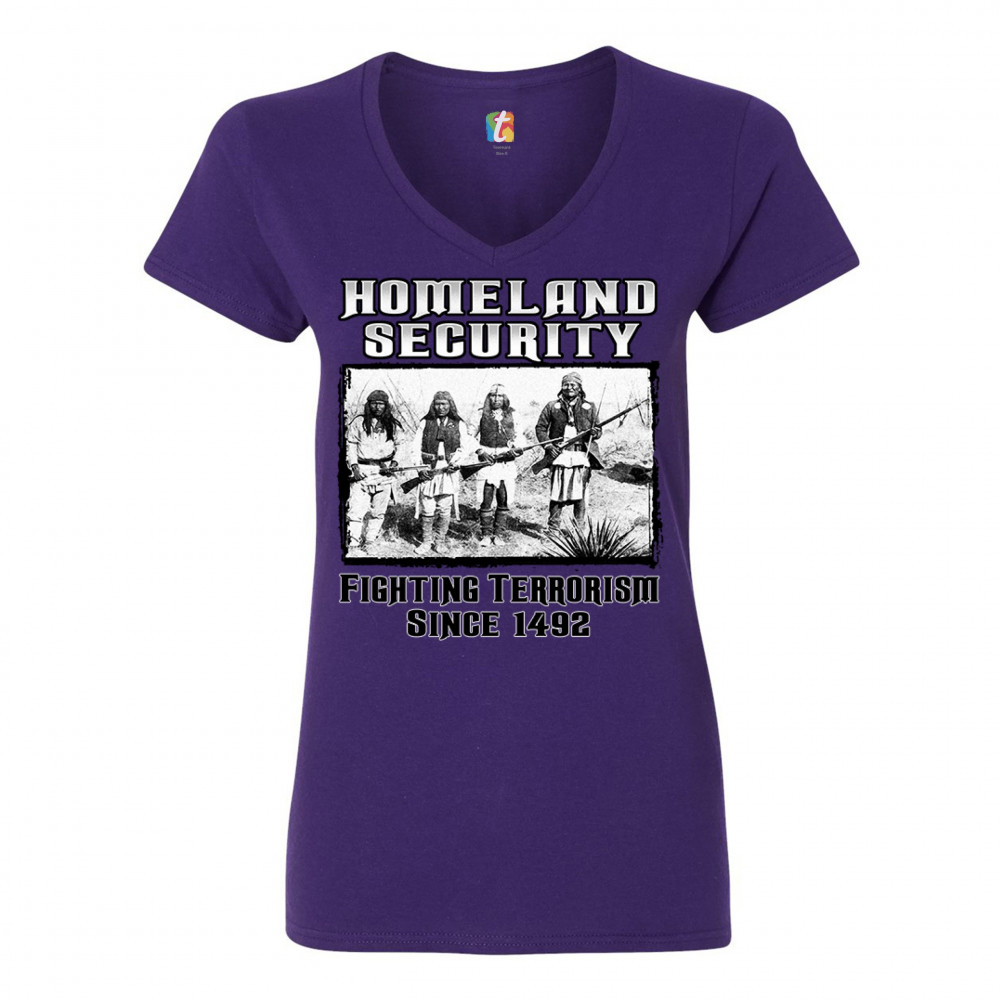 HOMELAND SECURITY women's v-neck t-shirt native american indigenous tribal tee purple