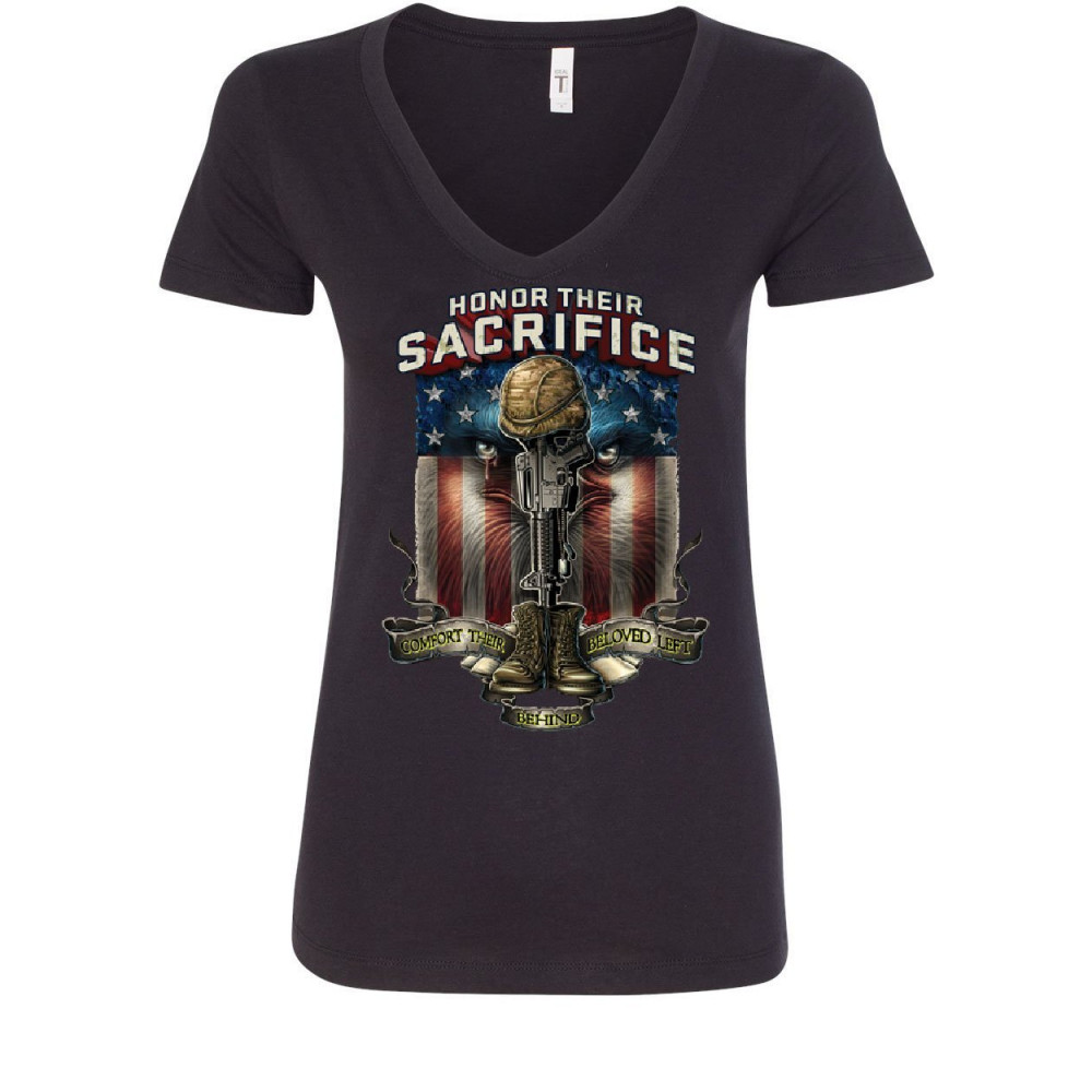 HONOR THEIR SACRIFICE women's v-neck t-shirt pow mia military remembrance army black