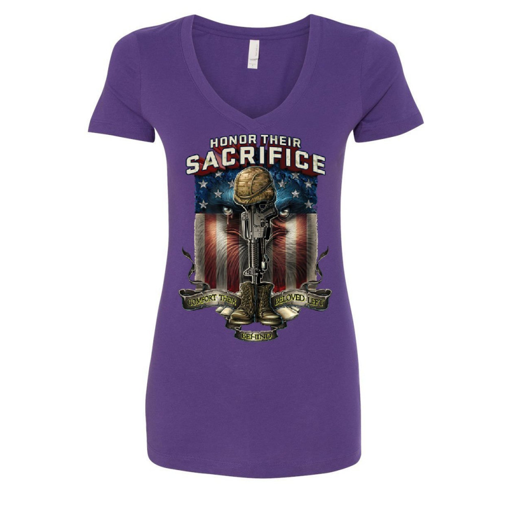 HONOR THEIR SACRIFICE women's v-neck t-shirt pow mia military remembrance army purple