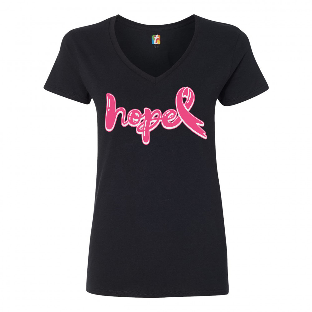 HOPE PINK RIBBON women's v-neck t-shirt breast cancer awareness month tee black