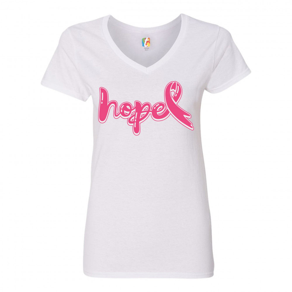 HOPE PINK RIBBON women's v-neck t-shirt breast cancer awareness month tee white