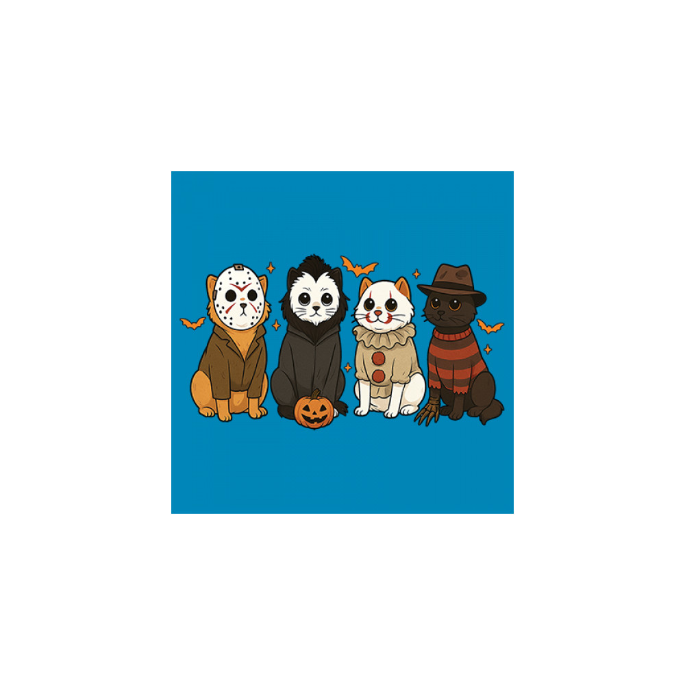 Get into the Halloween spirit with this Horror Cats Halloween design featuring spooky felines in creepy costumes. From Jack o Lantern details to Haunted House energy, it’s perfect for celebrating October 31 with festive style. A playful blend of Halloween vibes, autumn night chills, and witch-inspired magic, this design makes a great Halloween outfit for cat lovers and spooky fans alike.