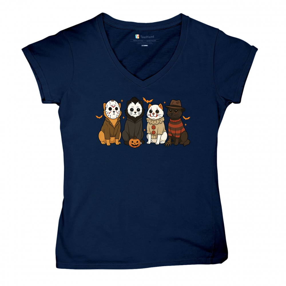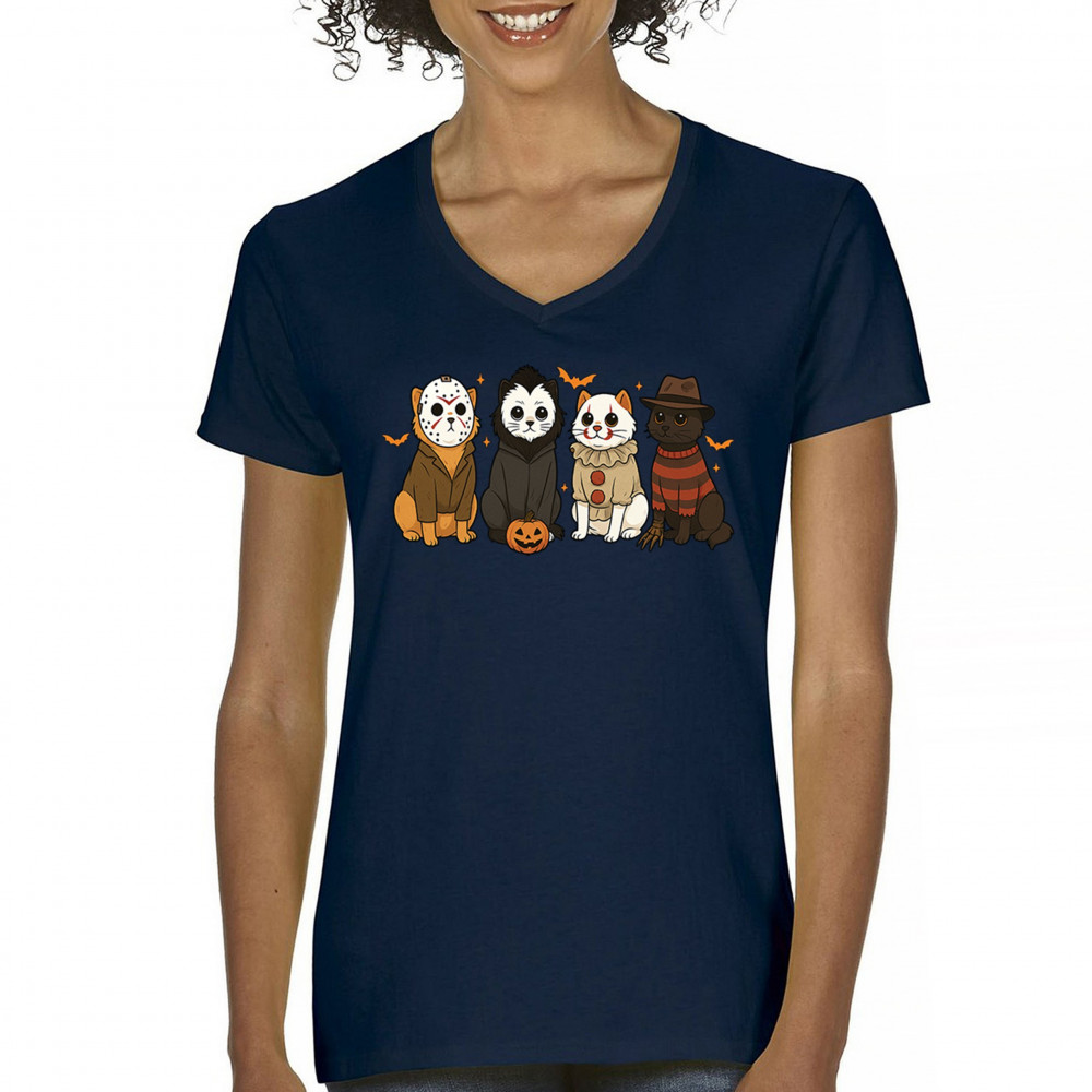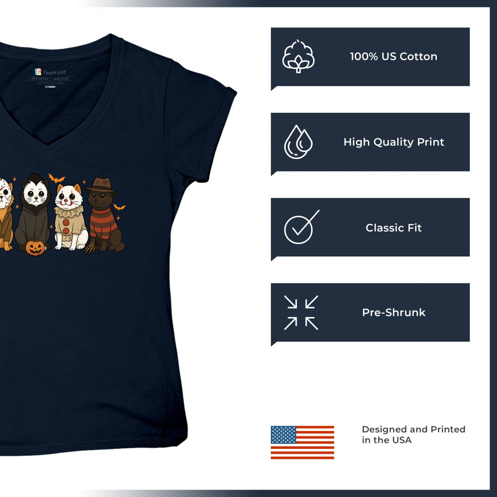 Horror Cats Halloween design with spooky costumes, Jack o Lantern details, and Haunted House vibes. Perfect October 31 outfit for cat lovers.