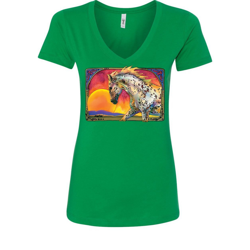 HORSE PRANCING IN SUNSET women's v-neck t-shirt animal wildlife mare stallion green