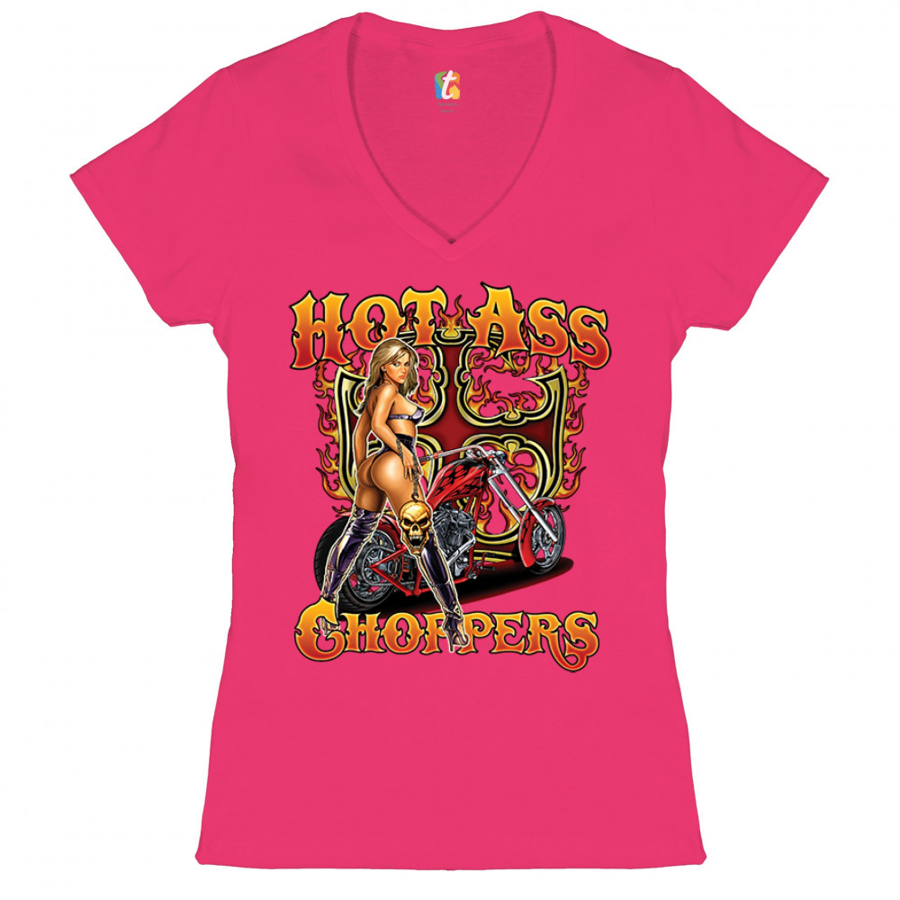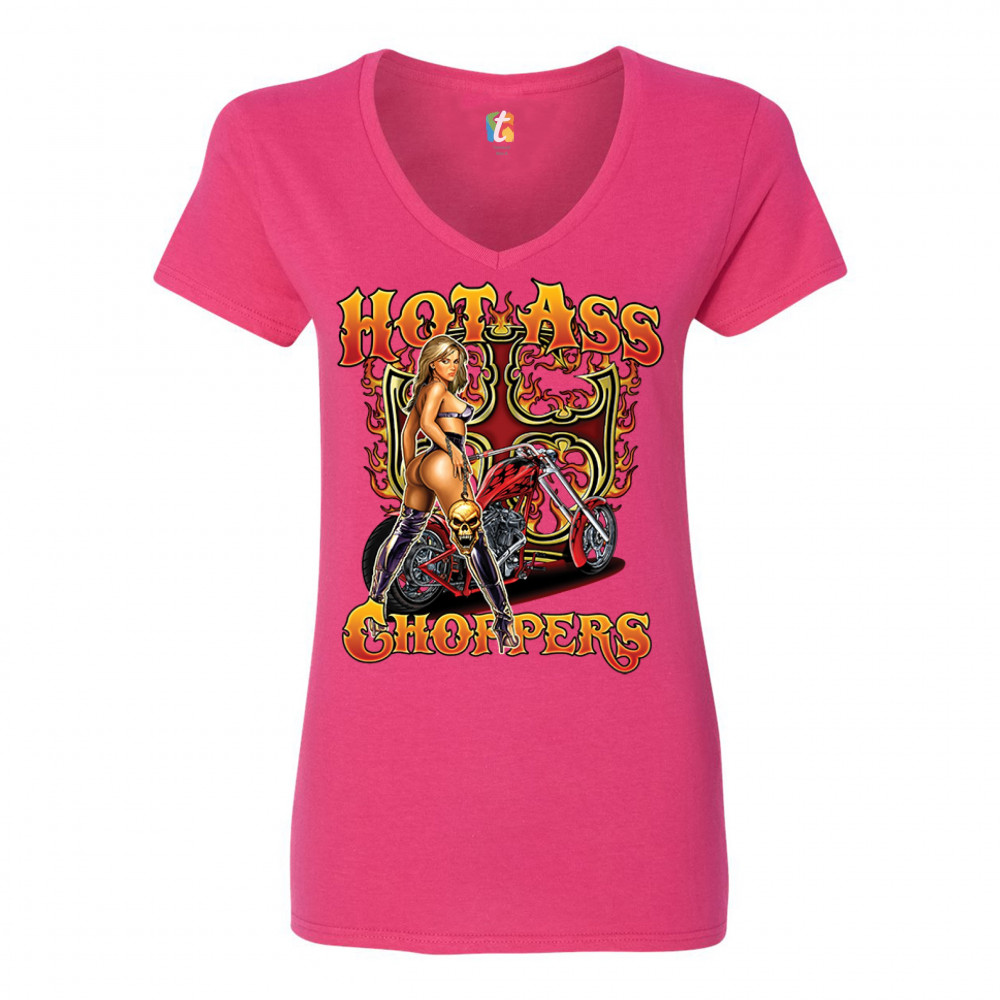 HOT ASS CHOPPERS women's v-neck t-shirt born to be wild route 66 hot chick tee pink