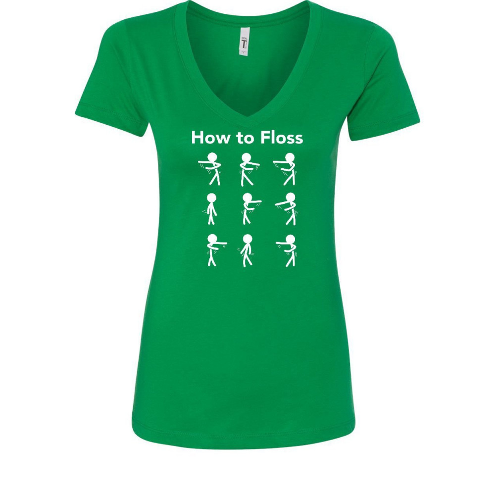 HOW TO FLOSS women's v-neck t-shirt new dance backpack kid tutorial funny trend green