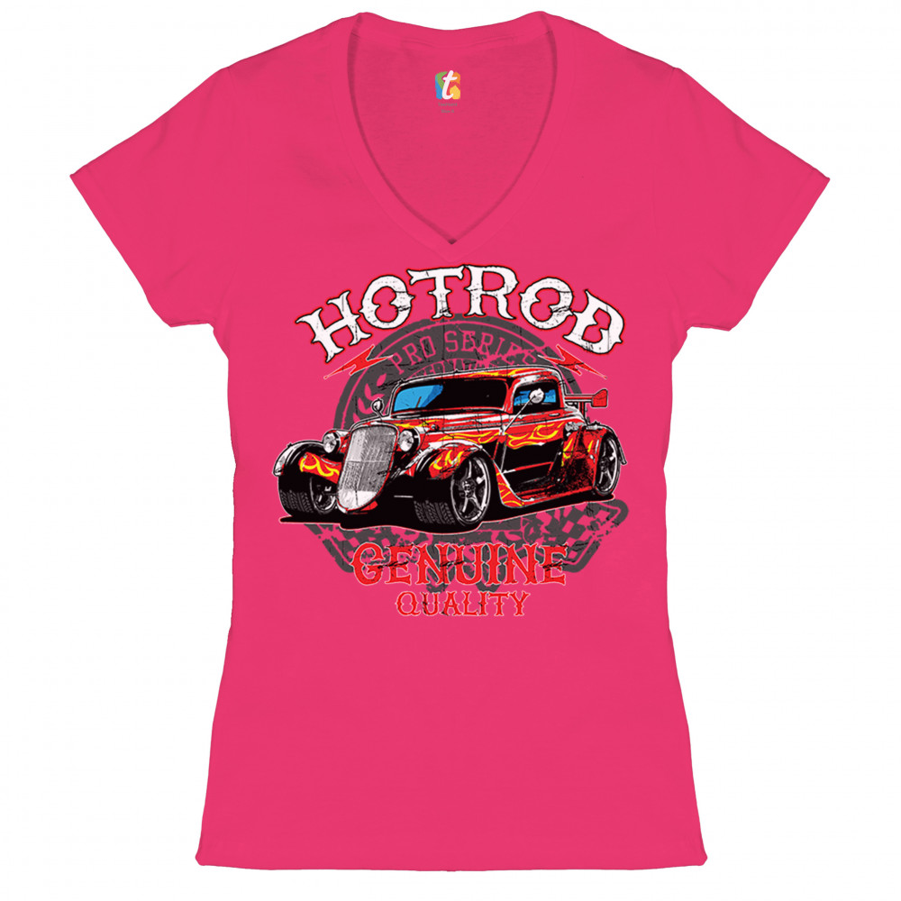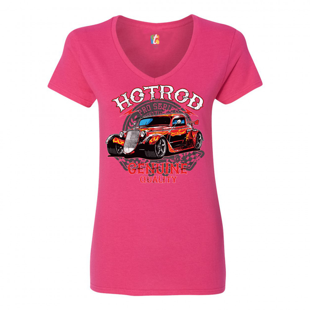 HOTROD women's v-neck t-shirt american muscle hot rod old school racing tee pink