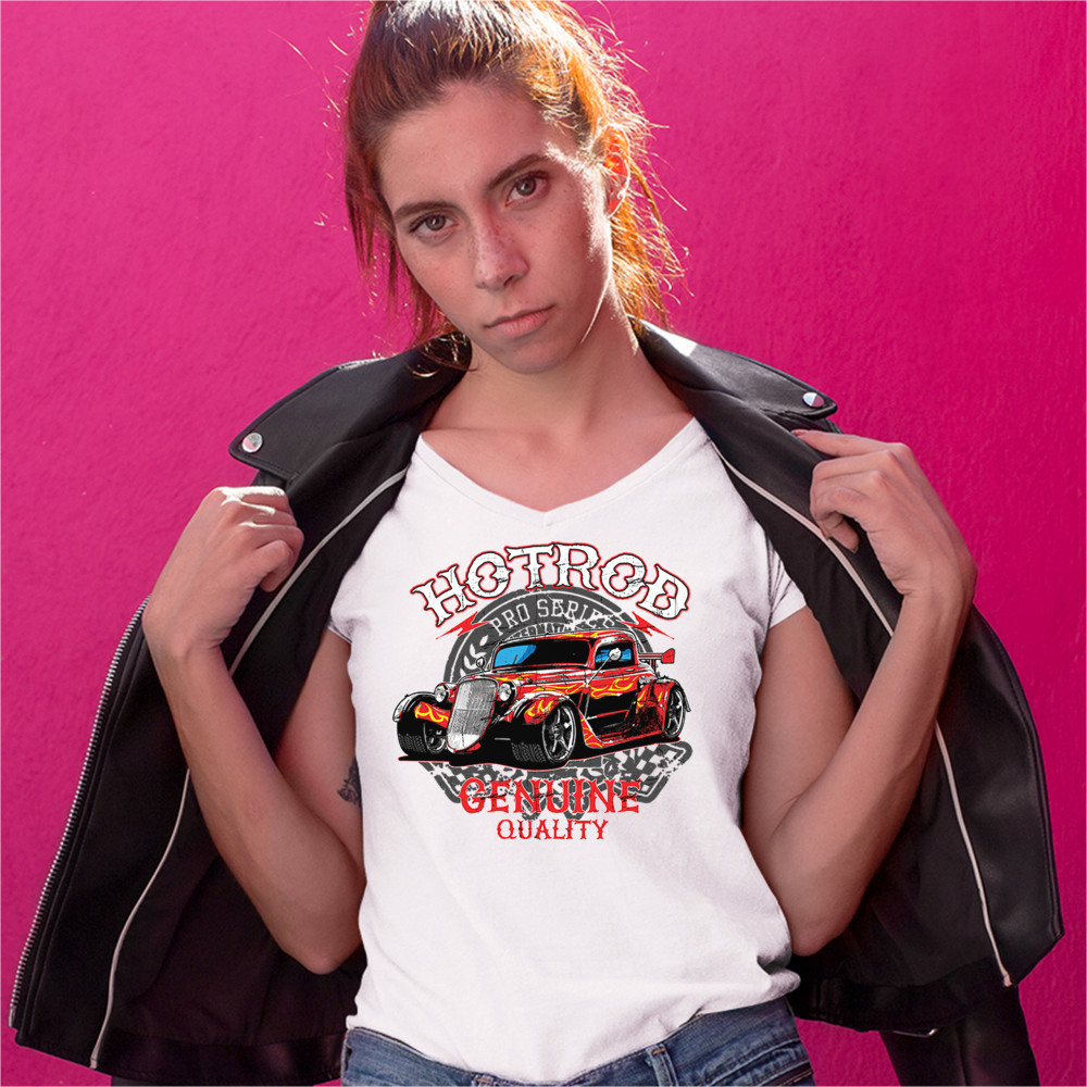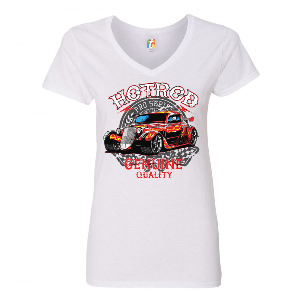 HOTROD women's v-neck t-shirt american muscle hot rod old school racing tee white