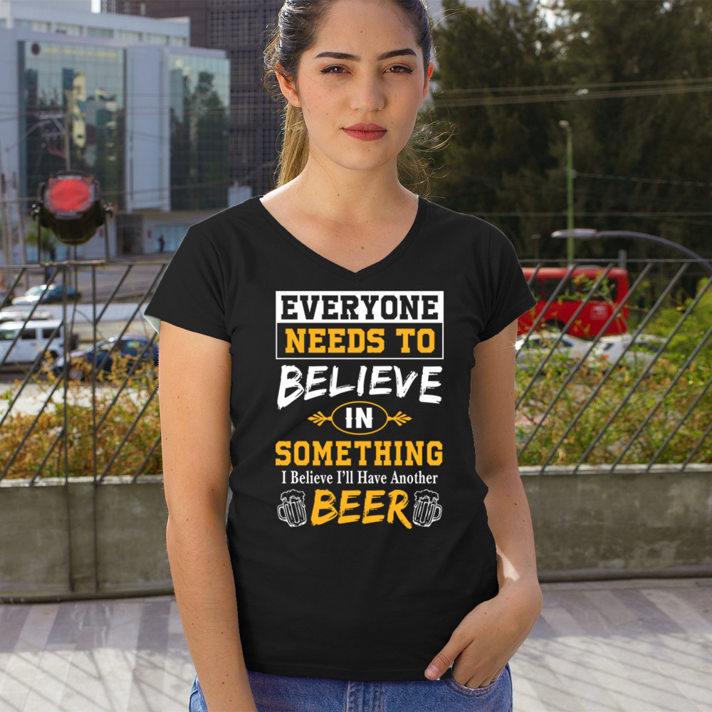 Celebrate your love for beer with the witty "Everyone Needs to Believe in Something, I Believe I'll Have Another Beer" design. Perfect for beer lovers and casual outings.