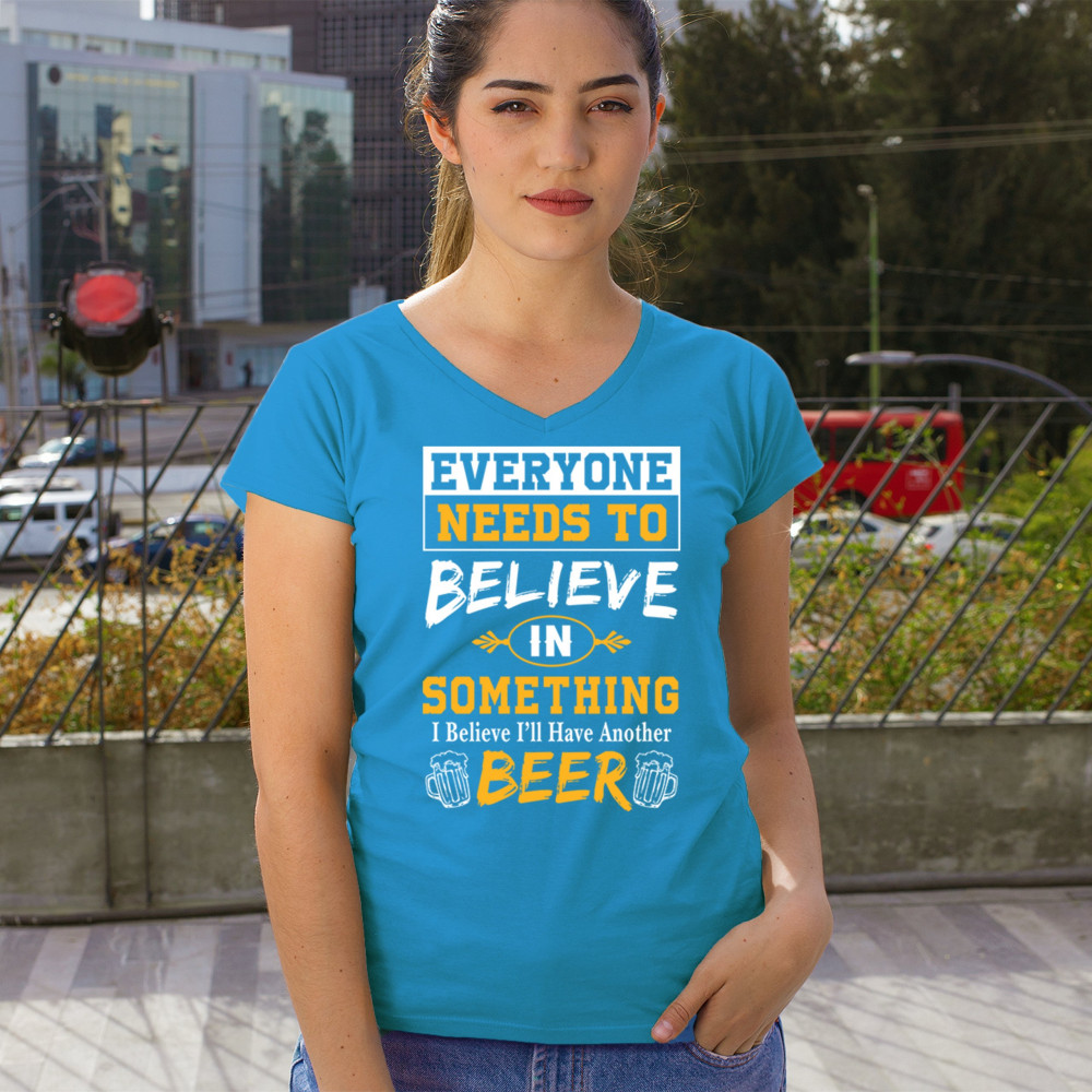 Celebrate your love for beer with the witty "Everyone Needs to Believe in Something, I Believe I'll Have Another Beer" design. Perfect for beer lovers and casual outings.