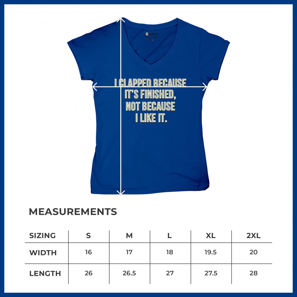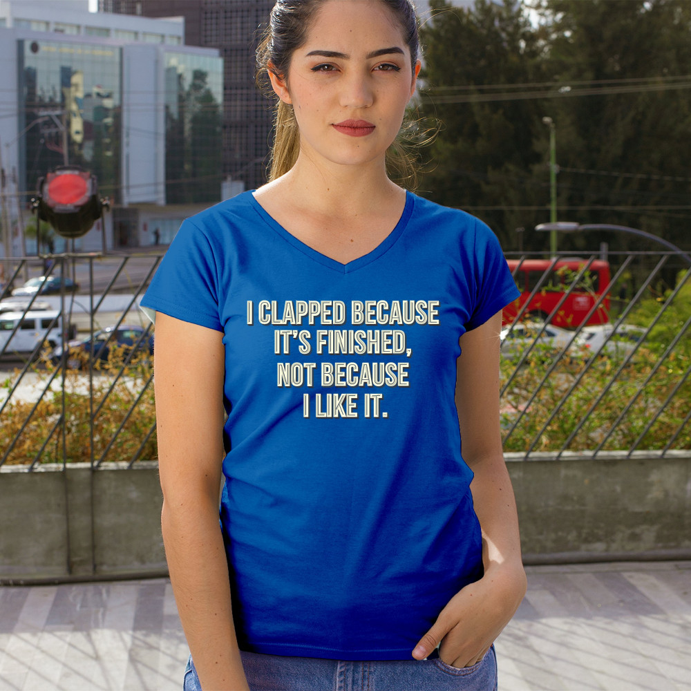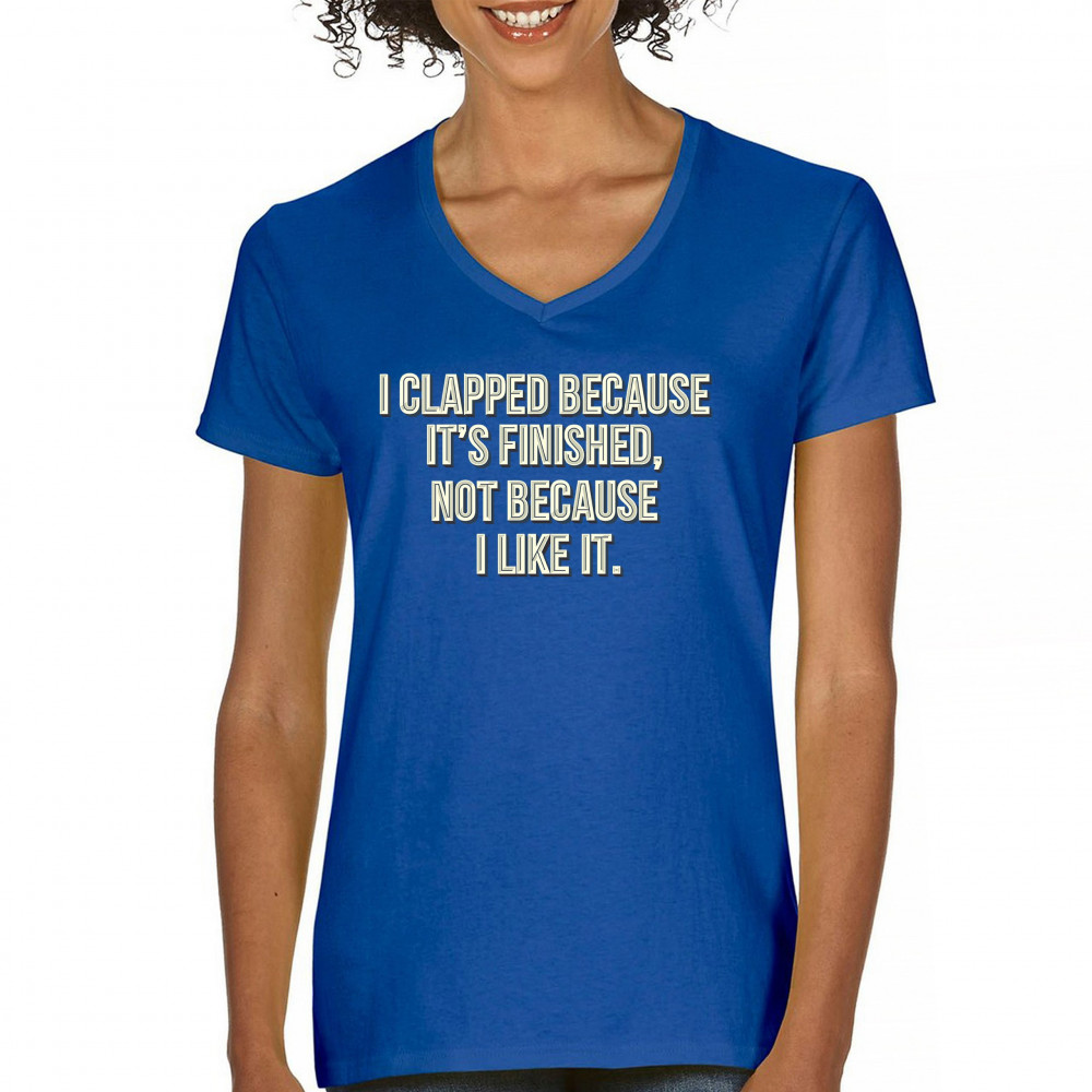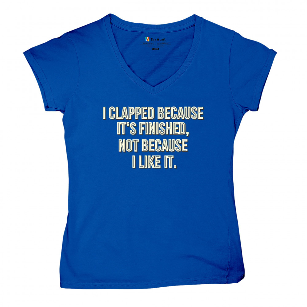 I CLAPPED BECAUSE IT'S FINISHED NOT BECAUSE I LIKE IT i clapped because it's finished sarcastic women's v-neck t-shirt funny tee royal blue