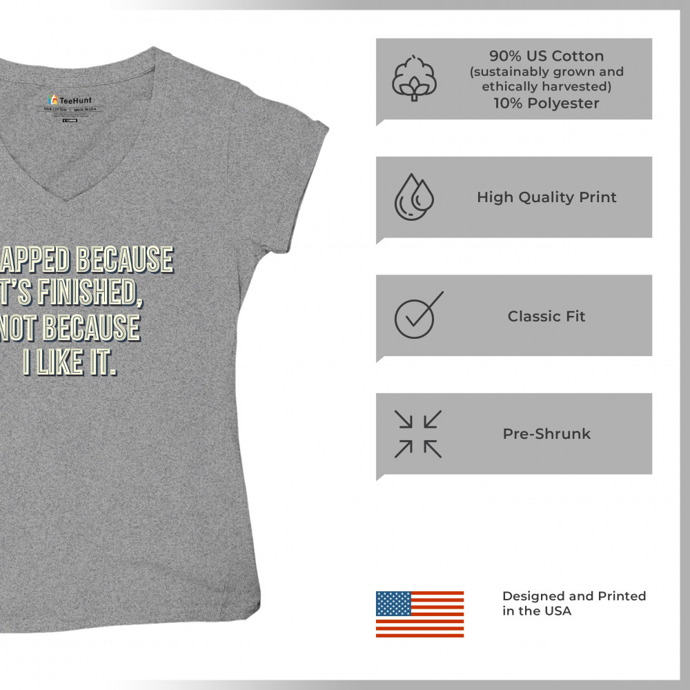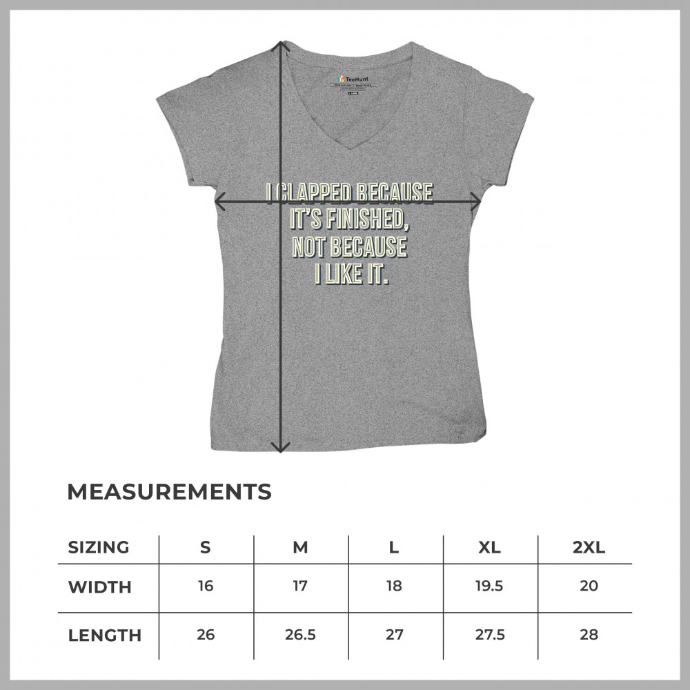 I CLAPPED BECAUSE IT'S FINISHED NOT BECAUSE I LIKE IT i clapped because it's finished sarcastic women's v-neck t-shirt funny tee gray