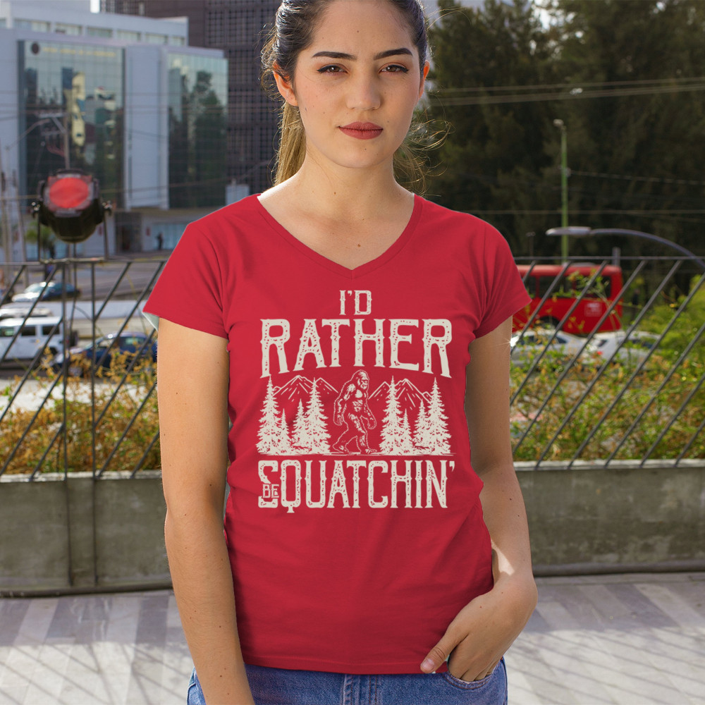 "I’d Rather Be Squatchin’" – A bold design for Bigfoot fans and outdoor adventurers, featuring Sasquatch in a wilderness setting. Perfect for hikers and cryptid enthusiasts!