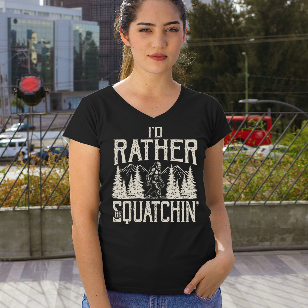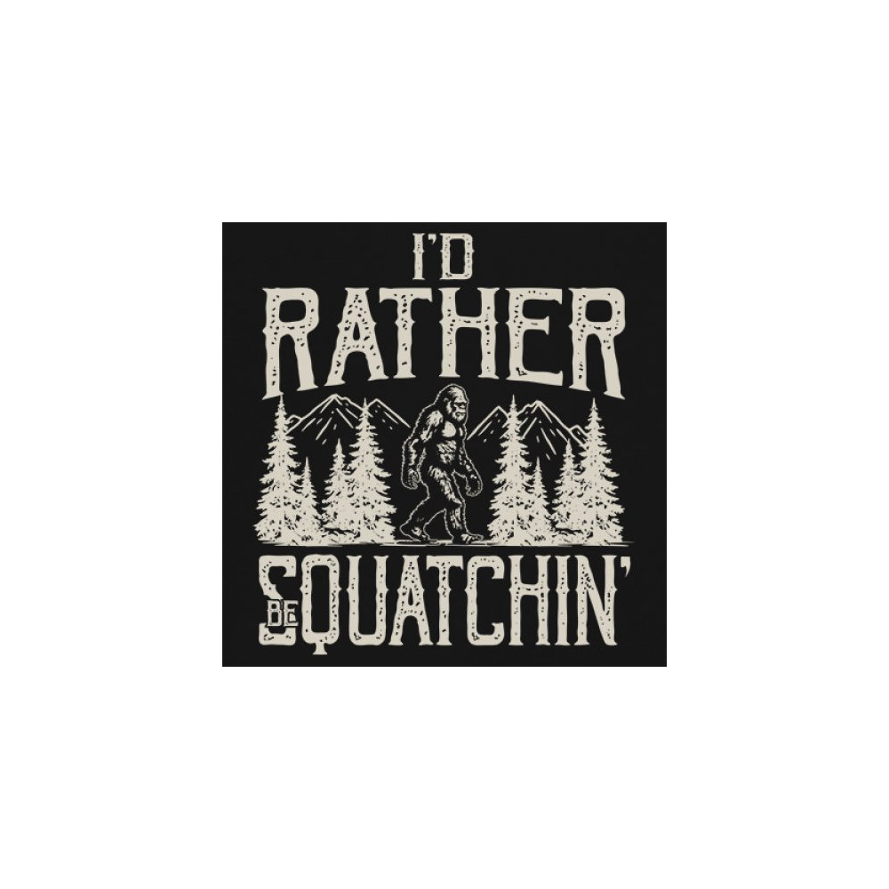 "I’d Rather Be Squatchin’" – A bold design for Bigfoot fans and outdoor adventurers, featuring Sasquatch in a wilderness setting. Perfect for hikers and cryptid enthusiasts!