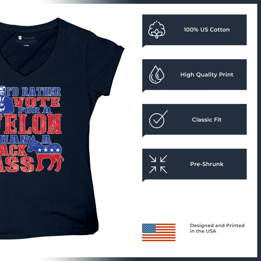 Boldly express your support with the "I'd Rather Vote For A Felon Than A Jackass" design. Perfect for rallies, it showcases loyalty to Trump and JD Vance.