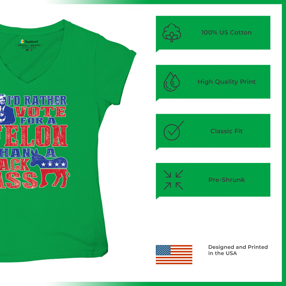Boldly express your support with the "I'd Rather Vote For A Felon Than A Jackass" design. Perfect for rallies, it showcases loyalty to Trump and JD Vance.