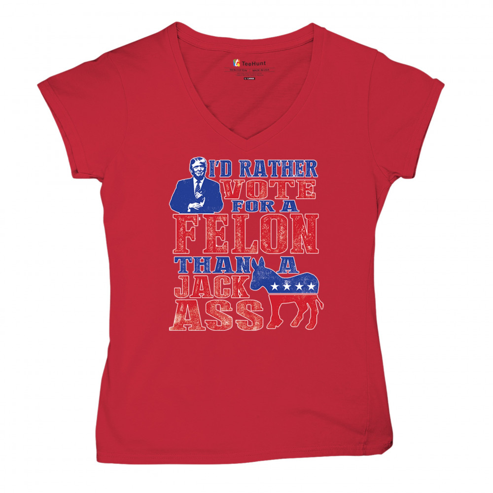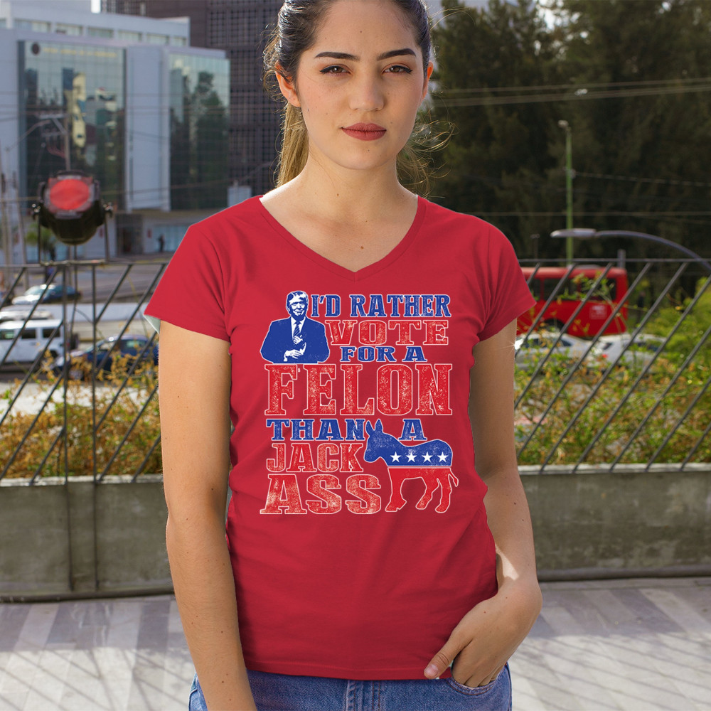 Boldly express your support with the "I'd Rather Vote For A Felon Than A Jackass" design. Perfect for rallies, it showcases loyalty to Trump and JD Vance.