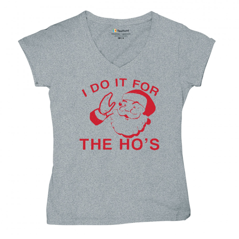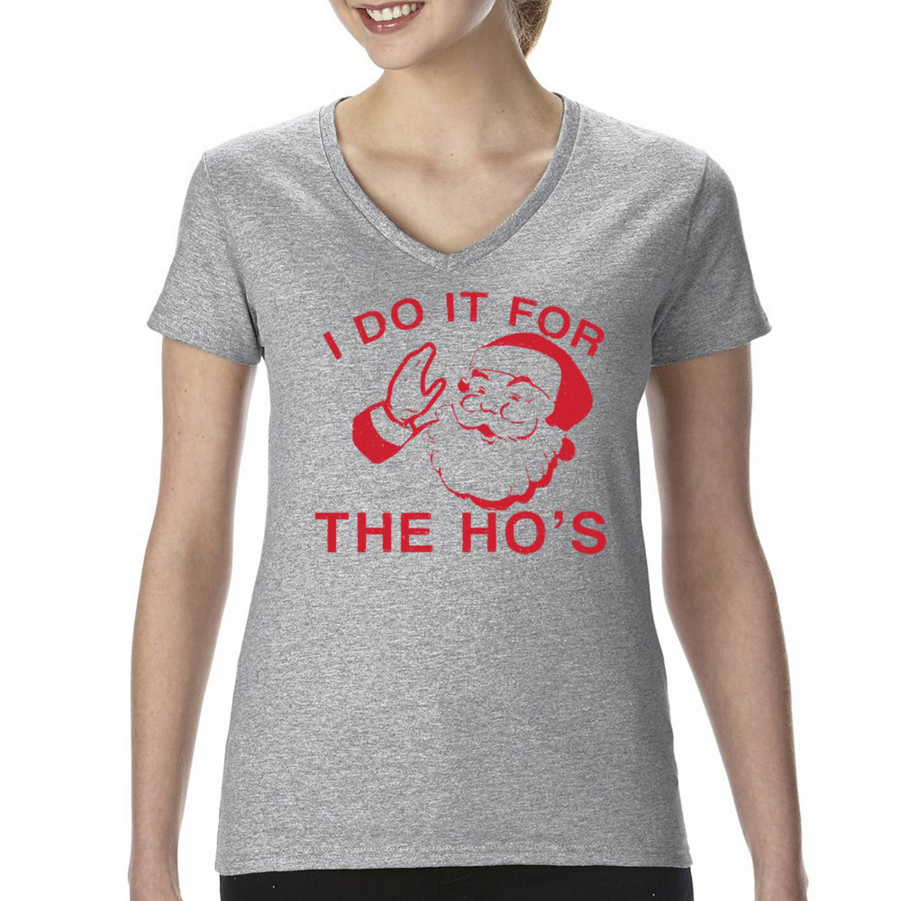 I DO IT FOR THE HO'S FUNNY CHRISTMAS women's v-neck t-shirt santa ugly tee gray