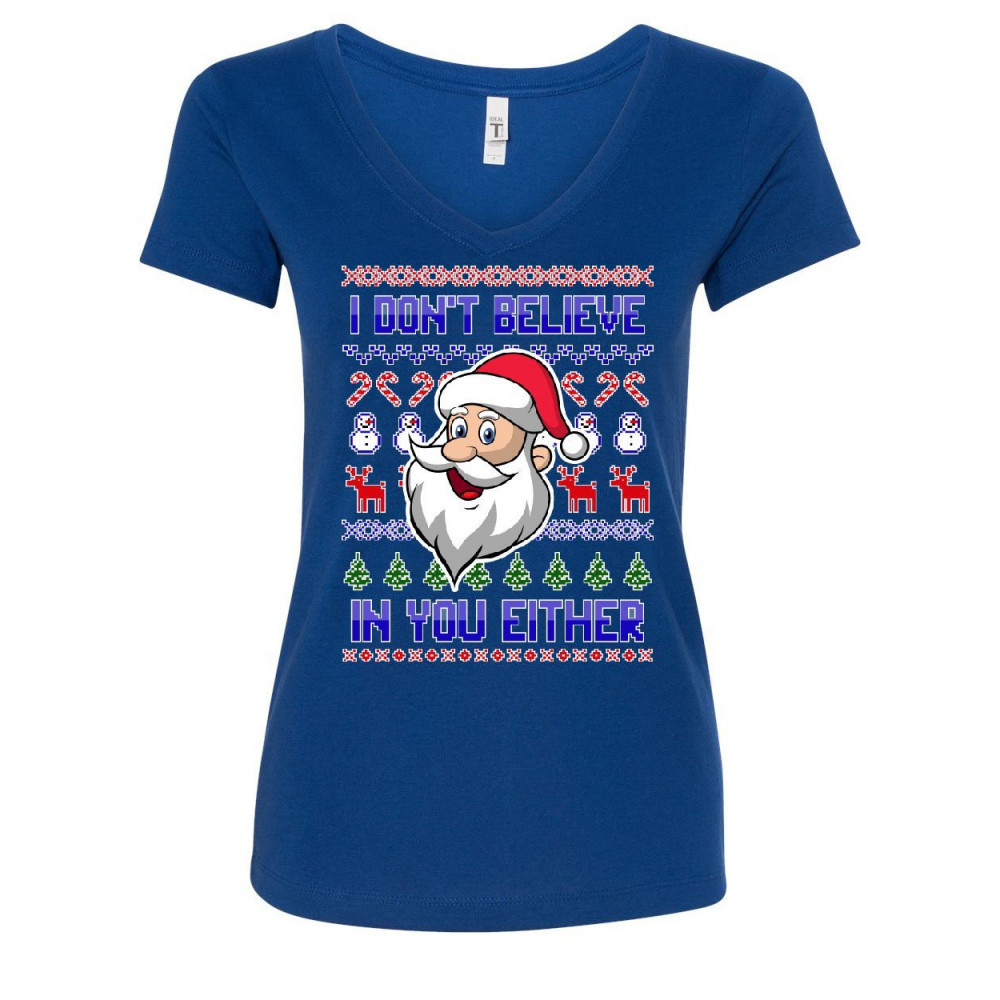 I DON'T BELIEVE IN YOU EITHER women's v-neck t-shirt christmas xmas santa ugly royal blue