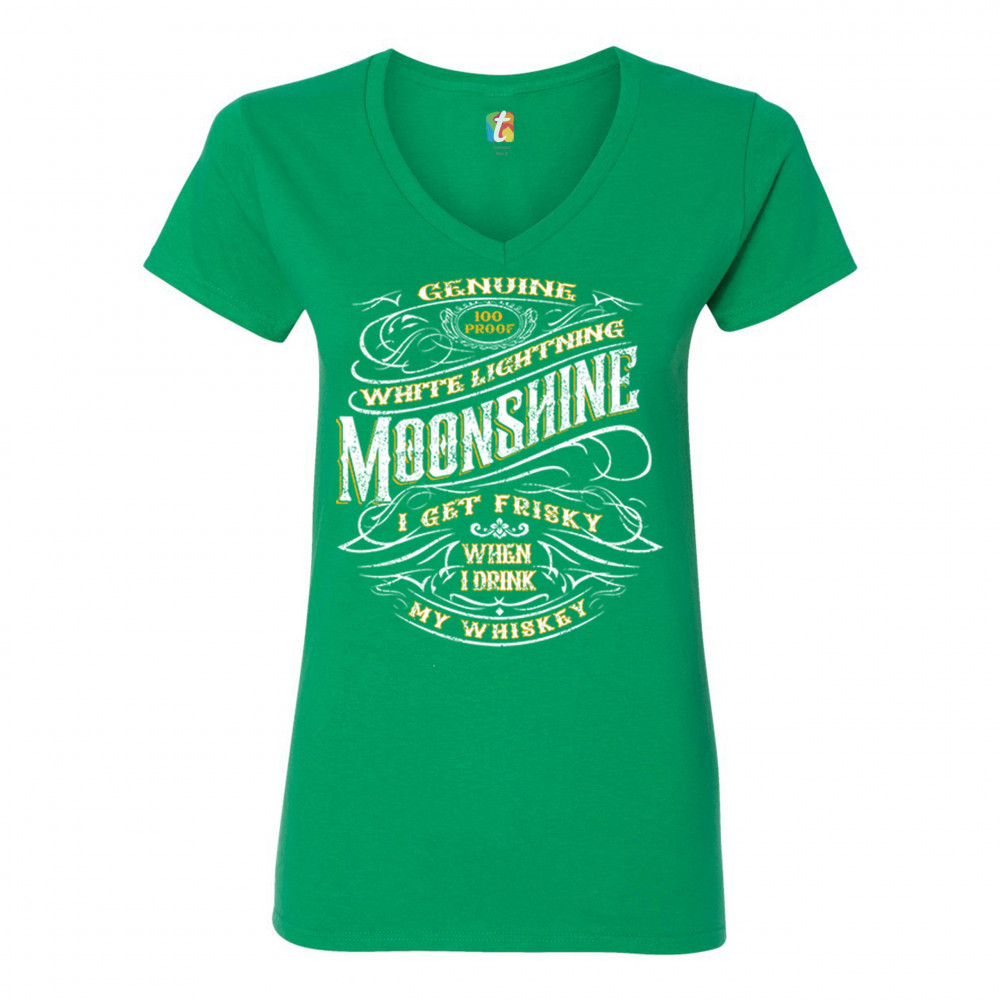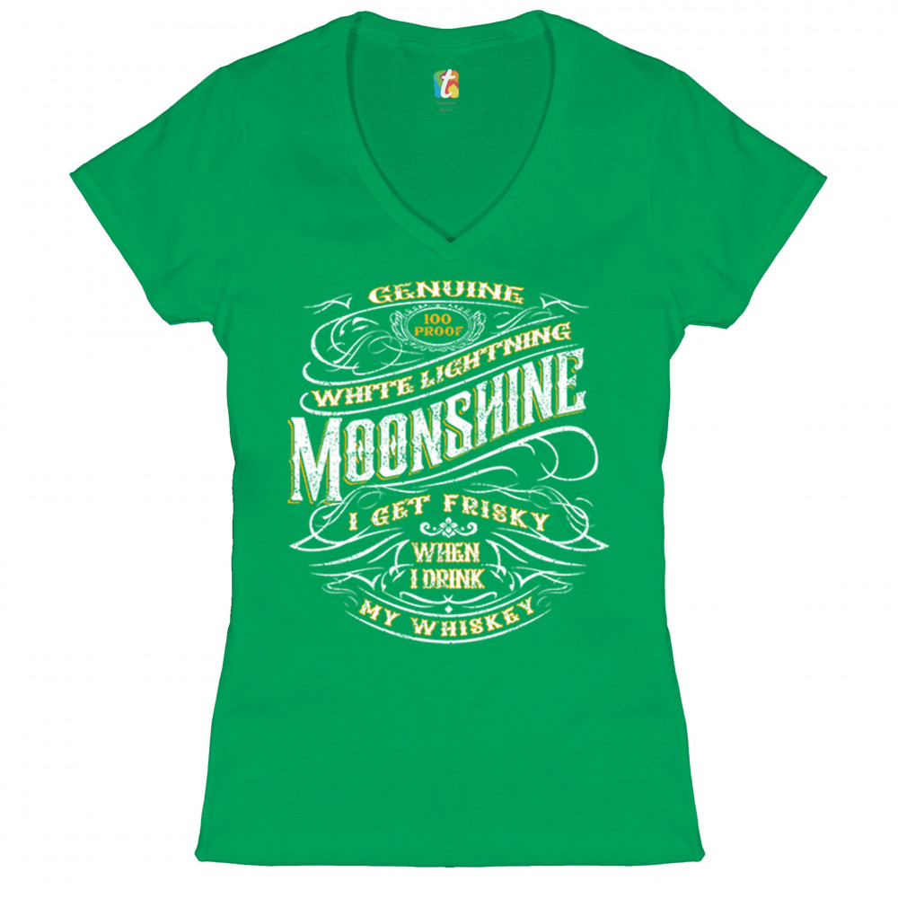 I GET FRISKEY WHEN I DRINK MY WHISKEY women's v-neck t-shirt moonshine tee green
