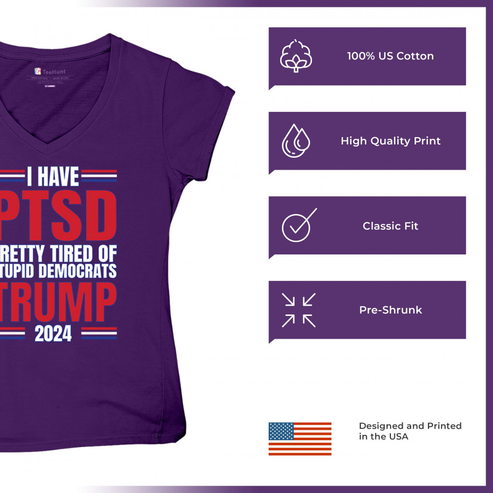 Stand up against the political chaos with "I have PTSD Pretty Tired of Democrats, Trump 2024" tee. As a dedicated supporter of conservative values, join the Trump Train to victory. Trust in God, not government, and reject the traitors to our nation. Let the American flag symbolize our resilience as we fight for President Trump and the future of America.