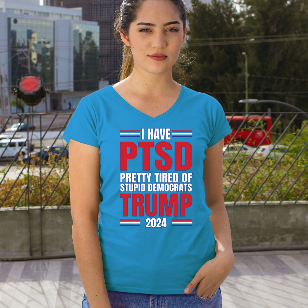 Declare your frustration with the political landscape with "I have PTSD Pretty Tired of Democrats, Trump 2024" tee. Embrace the America First movement and stand firm as a proud supporter of President Trump. Trust in God and reject the divisive agenda of t