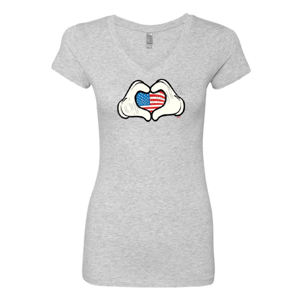 I HEART USA CARTOON HANDS women's v-neck t-shirt 4th of july cute american flag gray