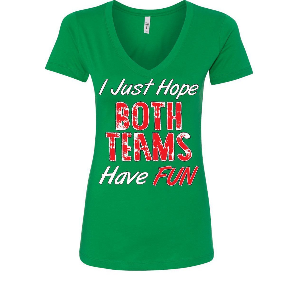 I JUST HOPE BOTH TEAMS HAVE FUN women's v-neck t-shirt football baseball hockey green