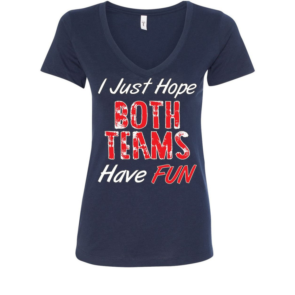 I JUST HOPE BOTH TEAMS HAVE FUN women's v-neck t-shirt football baseball hockey navy blue