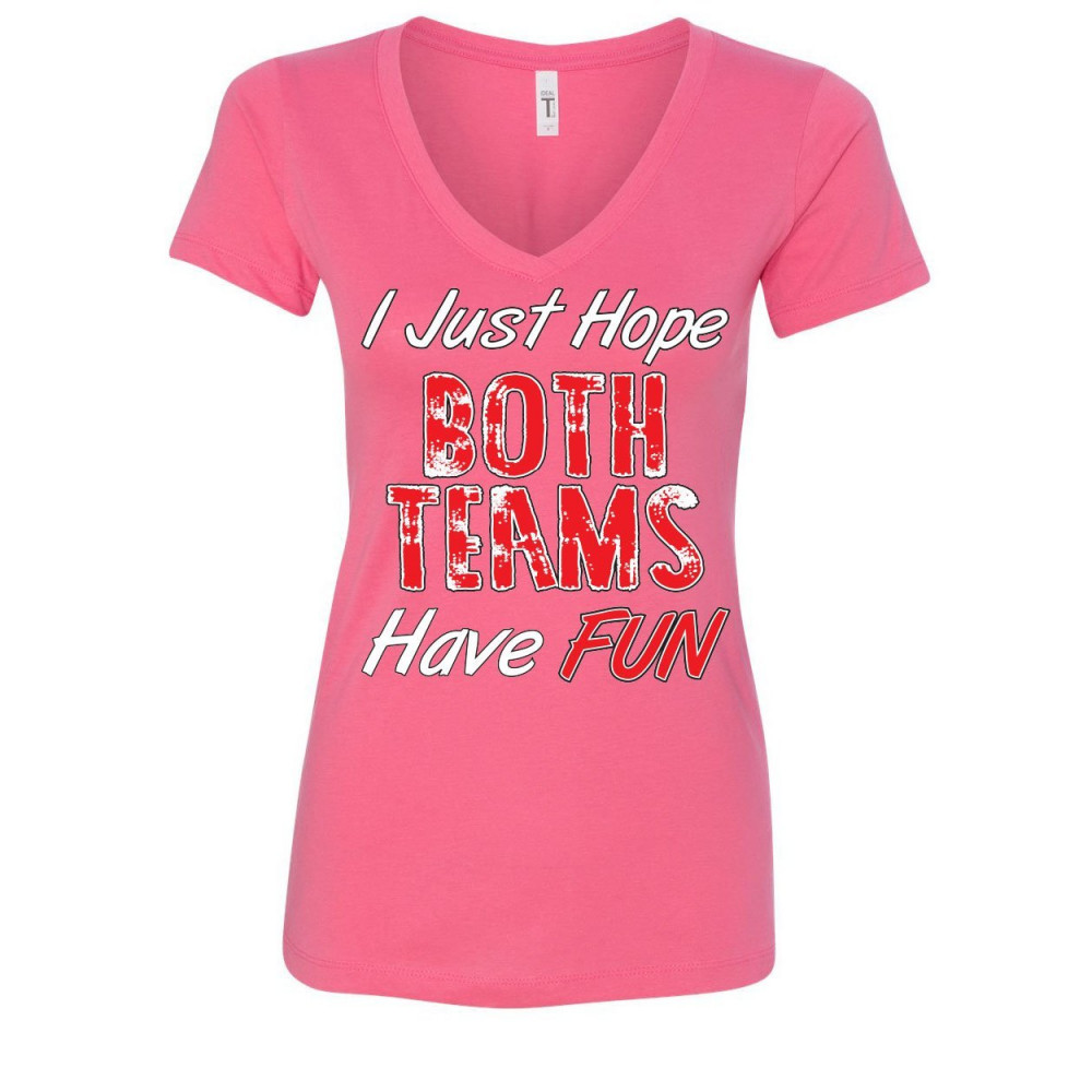 I JUST HOPE BOTH TEAMS HAVE FUN women's v-neck t-shirt football baseball hockey pink