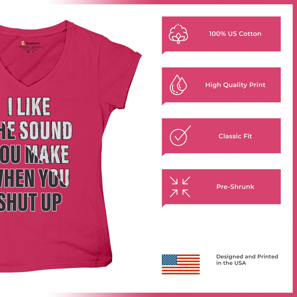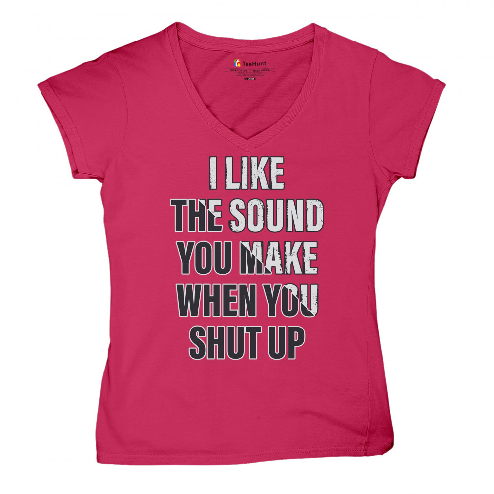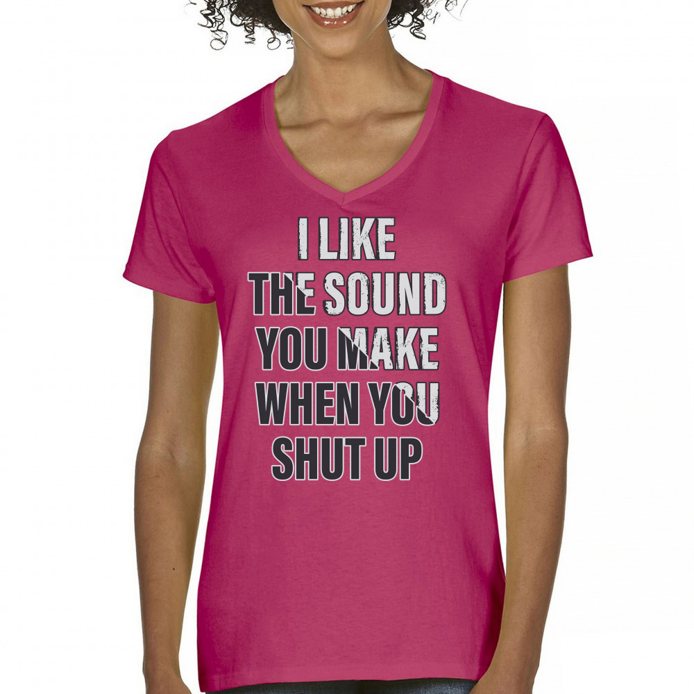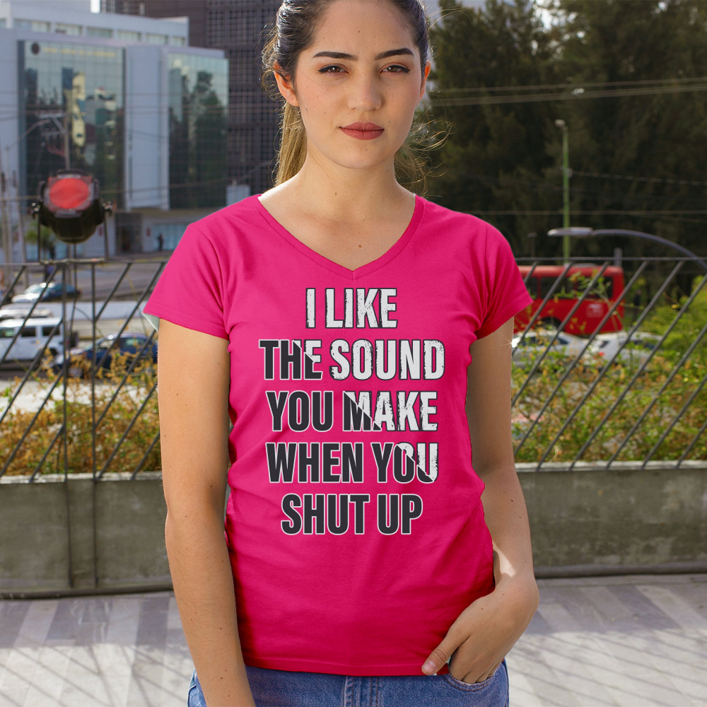 I LIKE THE SOUND YOU MAKE WHEN YOU SHUT UP women's v-neck t-shirt funny tee pink