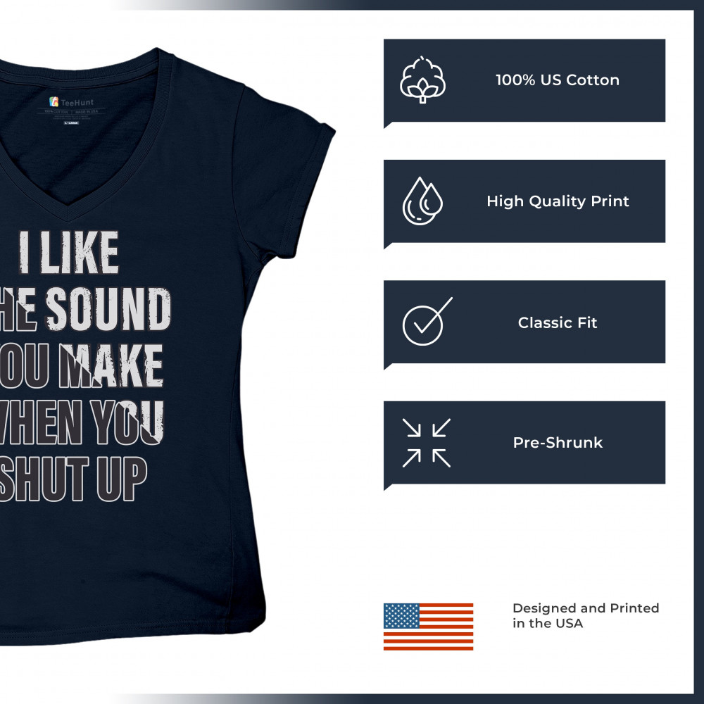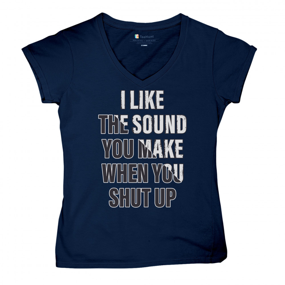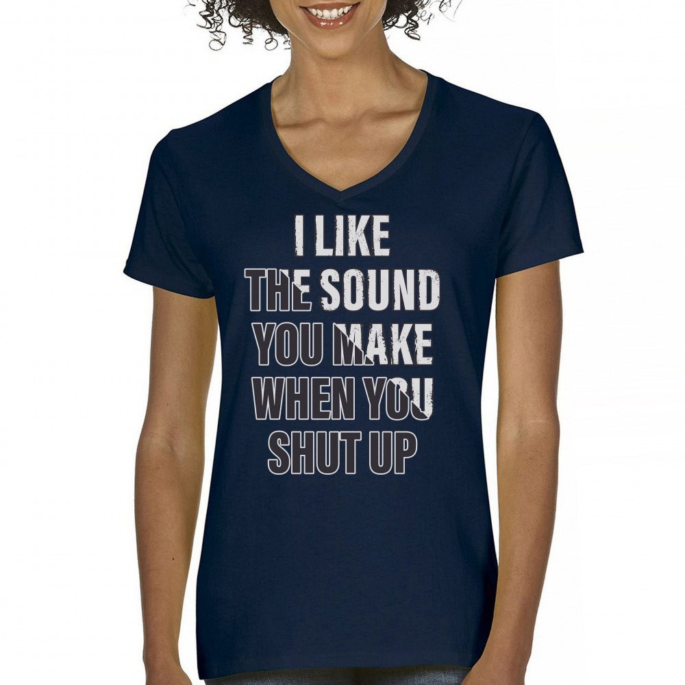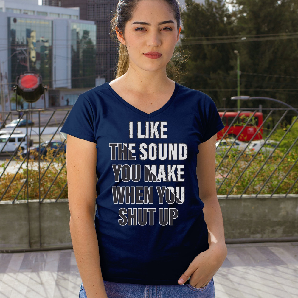 I LIKE THE SOUND YOU MAKE WHEN YOU SHUT UP women's v-neck t-shirt funny tee navy blue