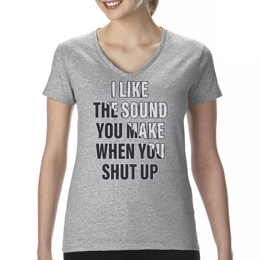 I LIKE THE SOUND YOU MAKE WHEN YOU SHUT UP women's v-neck t-shirt funny tee gray