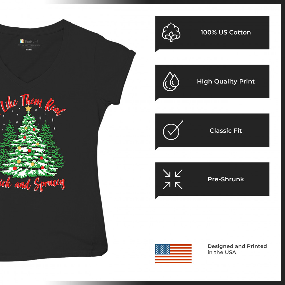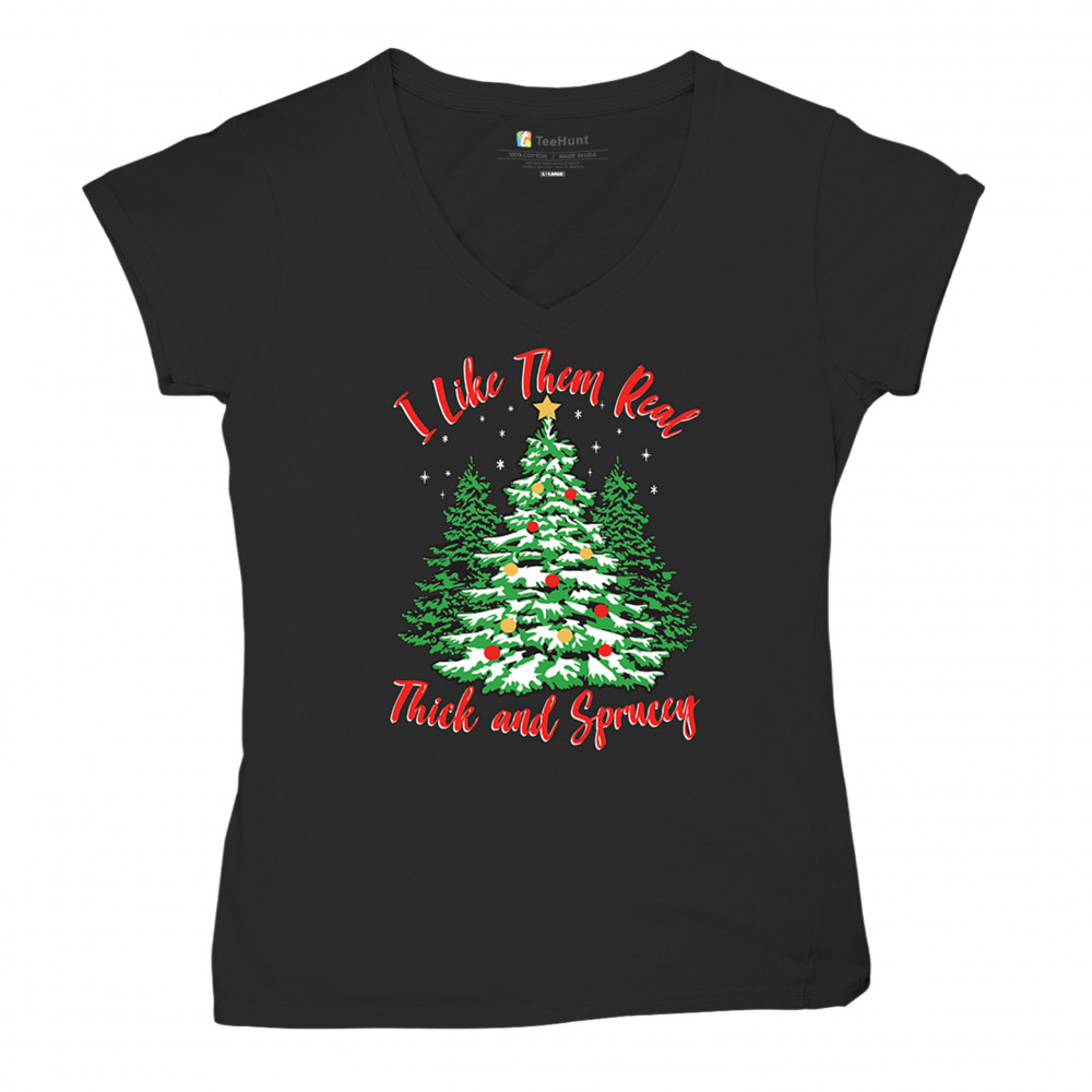 Enjoy the holiday season with our "I Like Them Real, Thick, and Sprucey" Christmas tree design, perfect for festive gatherings and holiday gifting!