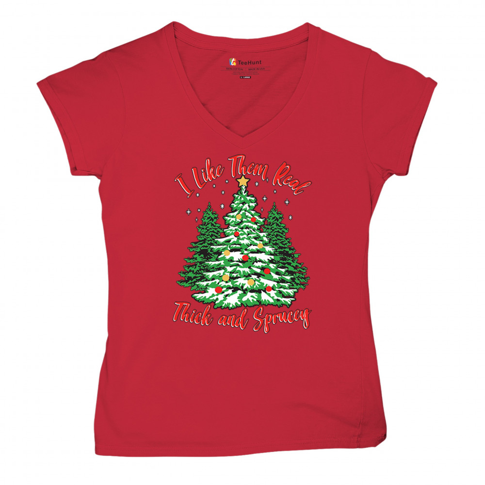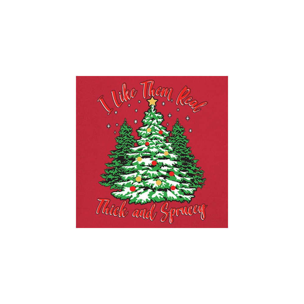 Enjoy the holiday season with our "I Like Them Real, Thick, and Sprucey" Christmas tree design, perfect for festive gatherings and holiday gifting!