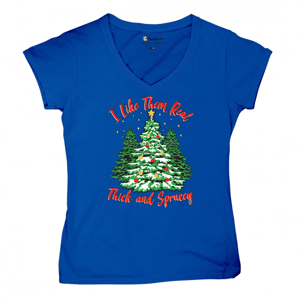 Enjoy the holiday season with our "I Like Them Real, Thick, and Sprucey" Christmas tree design, perfect for festive gatherings and holiday gifting!