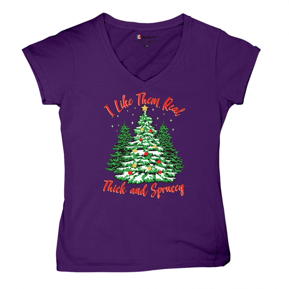 Enjoy the holiday season with our "I Like Them Real, Thick, and Sprucey" Christmas tree design, perfect for festive gatherings and holiday gifting!