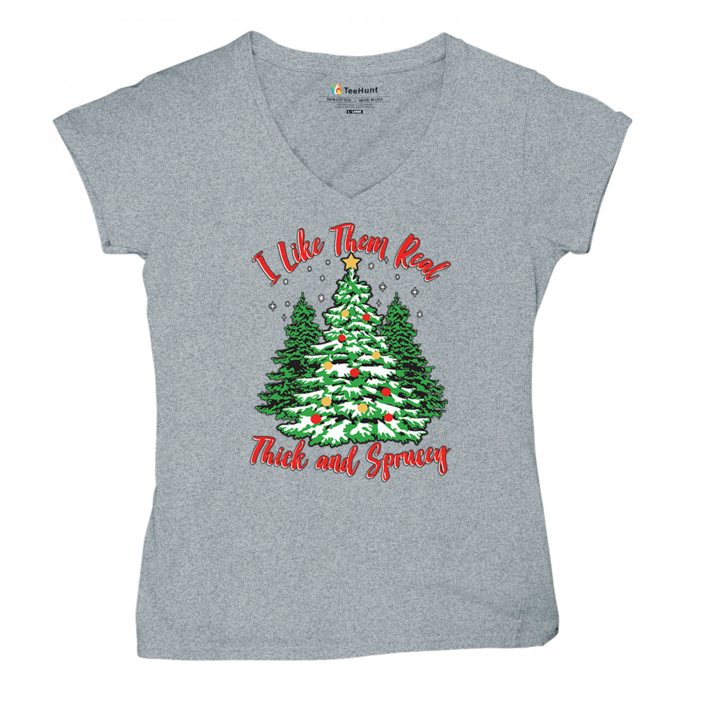 Enjoy the holiday season with our "I Like Them Real, Thick, and Sprucey" Christmas tree design, perfect for festive gatherings and holiday gifting!