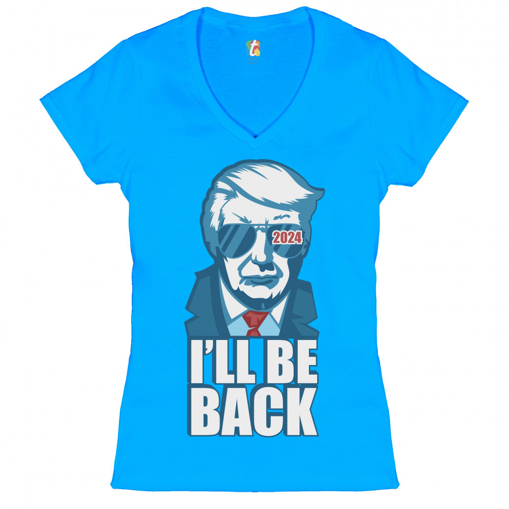 I'LL BE BACK DONALD TRUMP 2024 women's v-neck t-shirt take america back tee turquoise