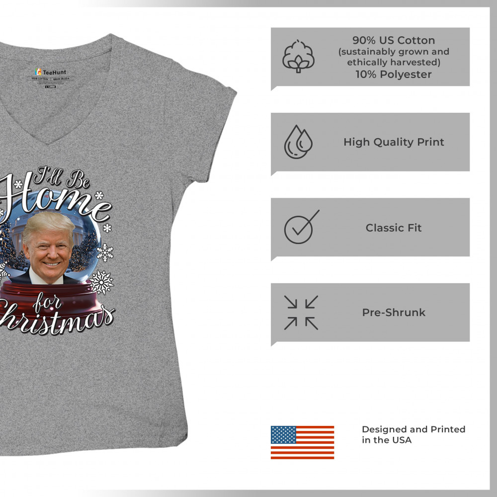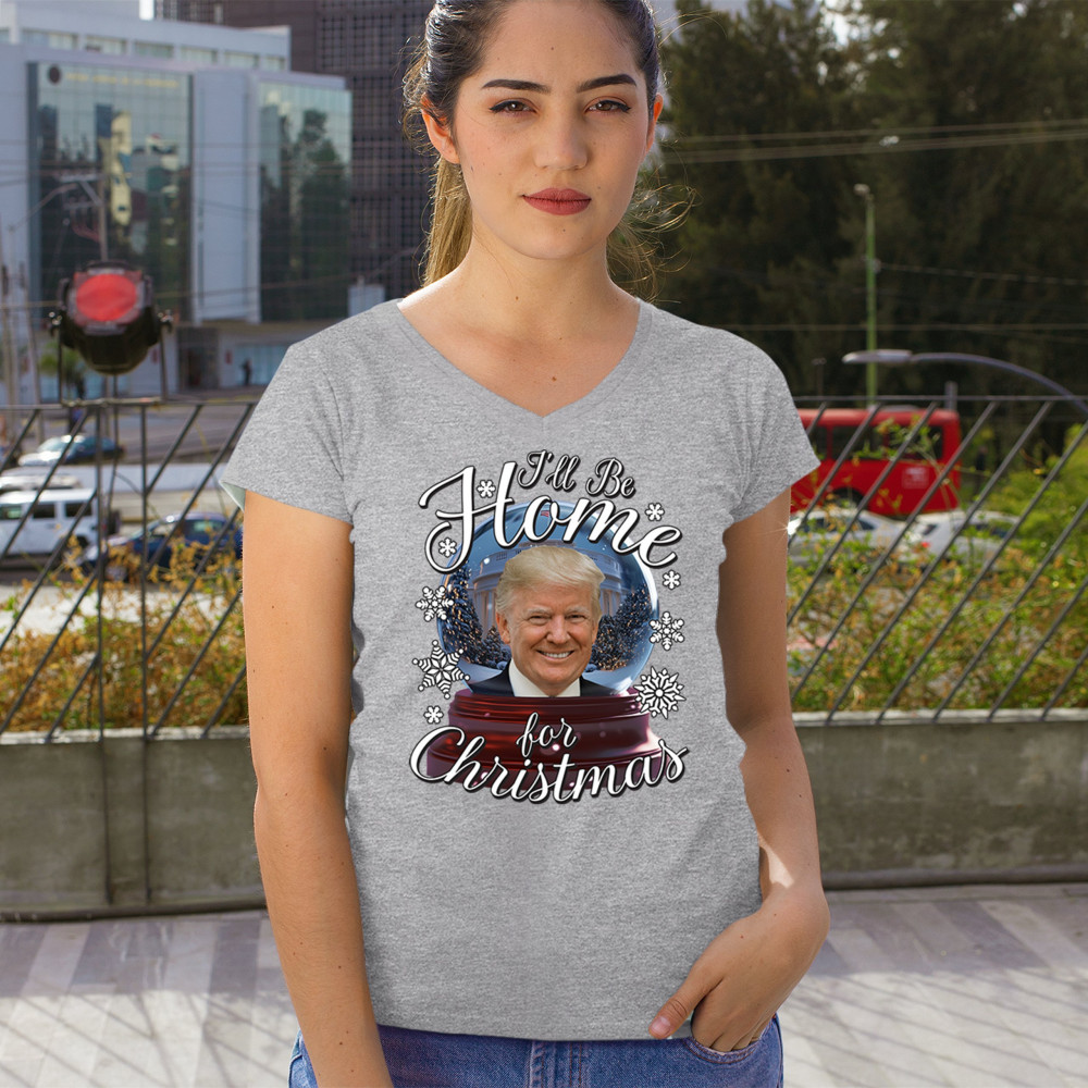 Get ready for the ultimate blend of holiday cheer and American pride with this "I'll Be Home for Christmas" design featuring Donald J. Trump in a festive snow globe. Perfect for gifts, holiday parties, or cozy mornings, this standout piece celebrates the season with style. Whether paired with matching pajamas or a cozy sweatshirt, it's a perfect way to add patriotic charm to your Feliz Navidad celebrations or office gatherings.